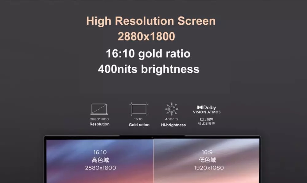 | Display | 14” QHD (2880 x 1800) IPS with Dolby Vision™ HDR, 400 nits |