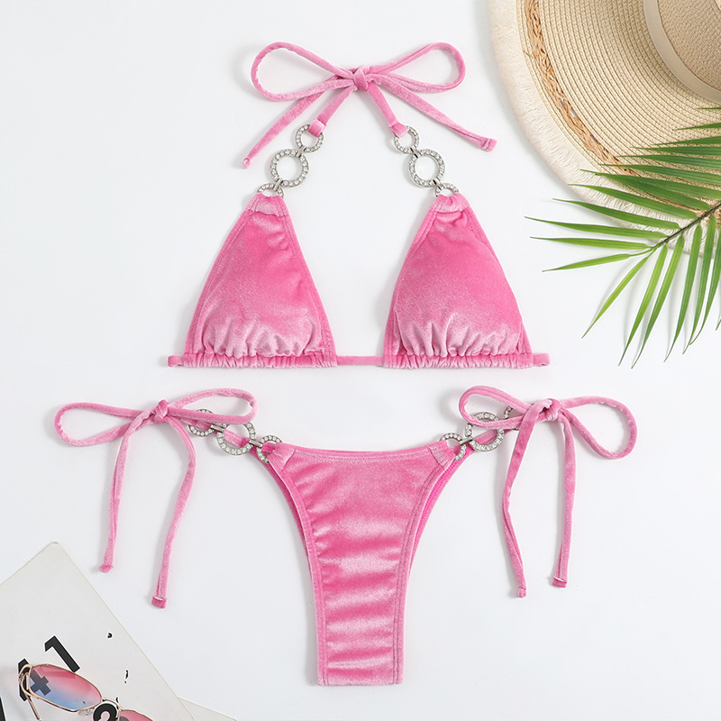 Sexy Velvet Bikini 2023 Mujer Women Solid Pink Push Up Thong Swimsuit Cut Out Bandage Bathing Suit Micro Swimwear Beach Outfits