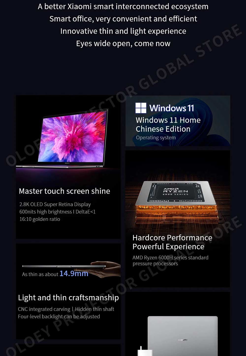 6.Before the notebook is sent, it will be tested by technicians to ensure that there is no problem before it is sent to our customers. After the notebook is opened, non-quality problems do not support returns. Buying notebook stores enjoy half a year of Xiaomi official warranty service (manually caused notebook computer failure or damage does not support warranty service), I hope you can understand, if you have any questions, you are welcome to consult our customer service at any time. Warranty Policy Detail--From Aliexpress OLOEY PROJECTOR GLOBAL Store