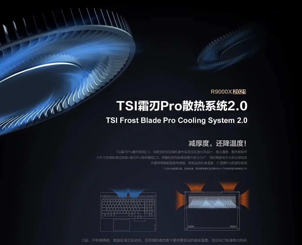 From the official description, the R9000X 2021 gamebook, for example, under half an hour of double copy load, the CPU can still maintain 45W power consumption, the GPU power consumption also has 75W, while the temperature is 85°, 65° Celcius respectively.