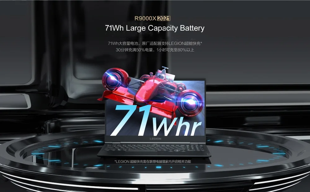 In terms of expandability, the Legion R9000X 2021 gamebook supports onboard + expansion memory, a capacity of 16GB, as well as 512GB SSD, dual M.2 interface. The Legion R9000X 2021 is equipped with a 71Wh battery and an adapter power of up to 230W, supporting100W fast charging.