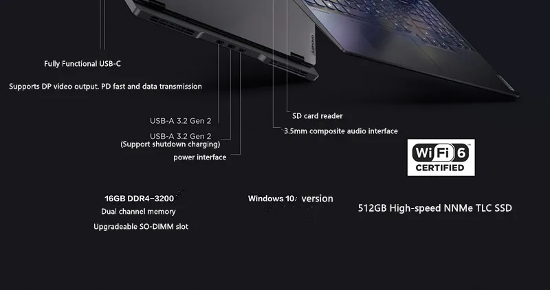 Windows 10 Home Edition, 100% high score high color gamut gaming screen, 165 high refresh rate.GeForce RTX 3060 discrete graphics card, 100W powerful performance release. Full zone in and out of the air system, Frostbite Pro cooling system 3.0.This side of the thin and light gaming book light about 1.94kg, as thin as 15.9mm, with 16GB DDR4 memory, 512GB/1TB NVMe SSD, rich high-speed interface, 2 × full-featured USB-C + 2 × USB-A 3.2 Gen2, full-size SD card reader. There is LEGION TrueStrike original sensing keyboard, independent keypad + large size steering wheel + power button with integrated fingerprint recognition, while Fn+Q performance mode switching, quiet/equilibrium/beast mode adjustment on demand.