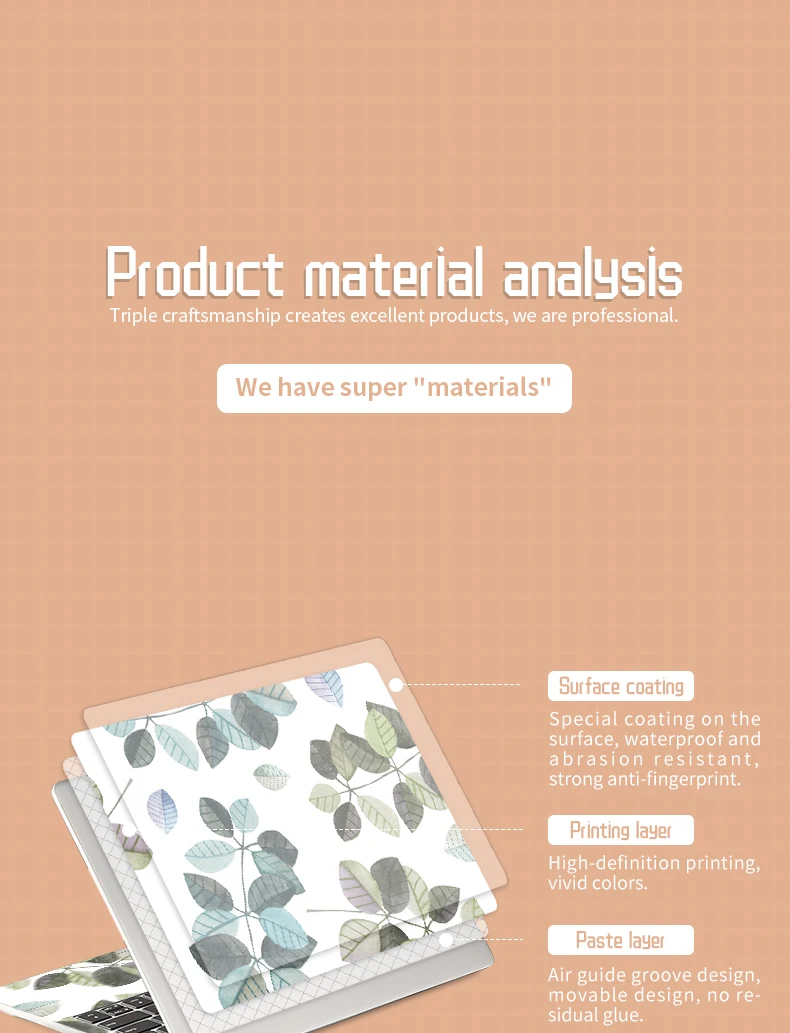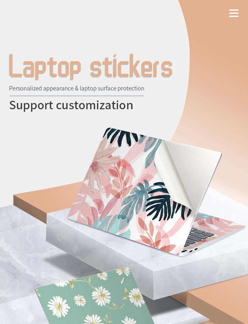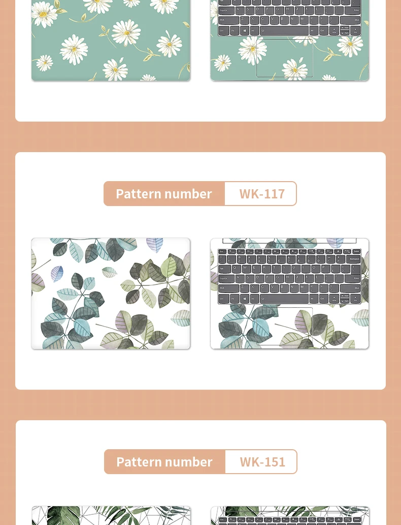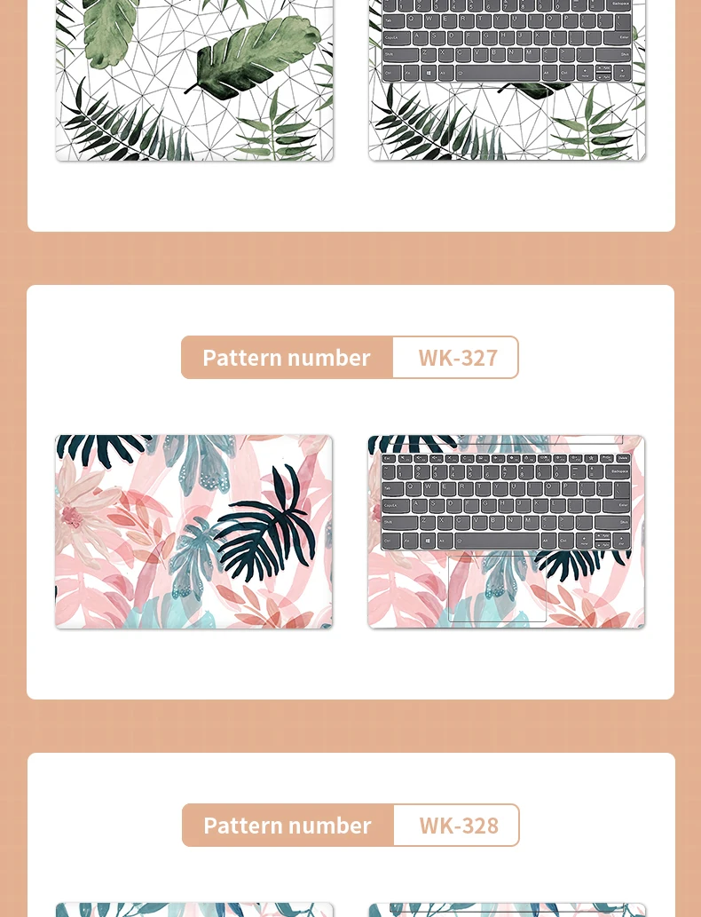 Universal Botany Cover Laptop Stickers Skins 2pcs 13.3"14"15.6"17.3" Vinyl Skin Leaf Decorate Decal for Macbook /Lenovo/Asus/Hp