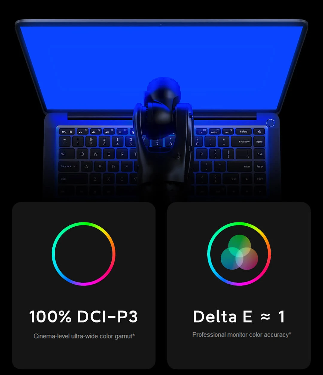 100% sRGB color gamut/100% DCI-P3 color gamut, support DC dimming,