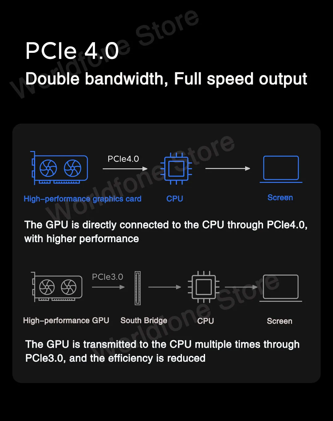 PCIe 4.0 Double bandwidth, full speed output.