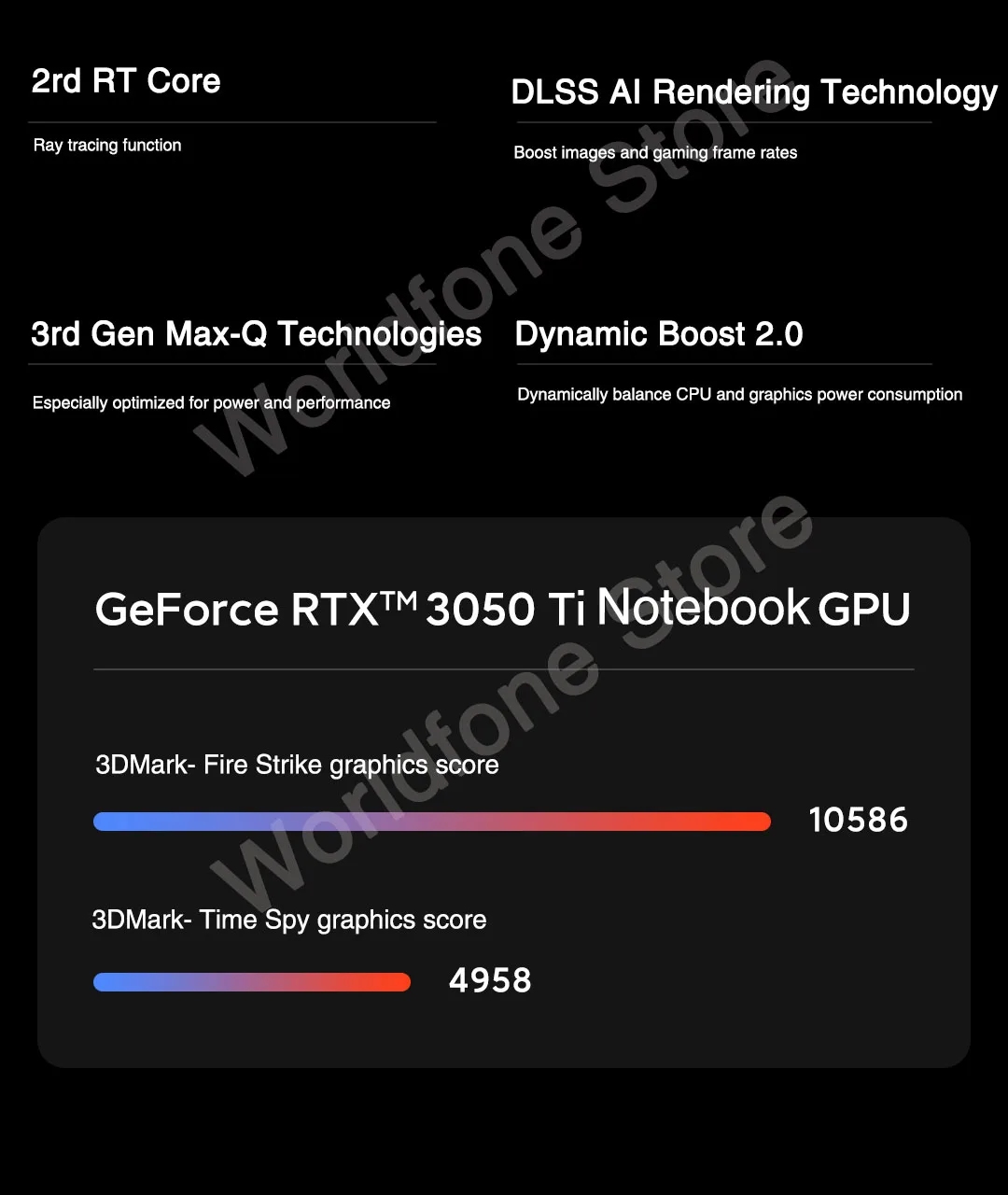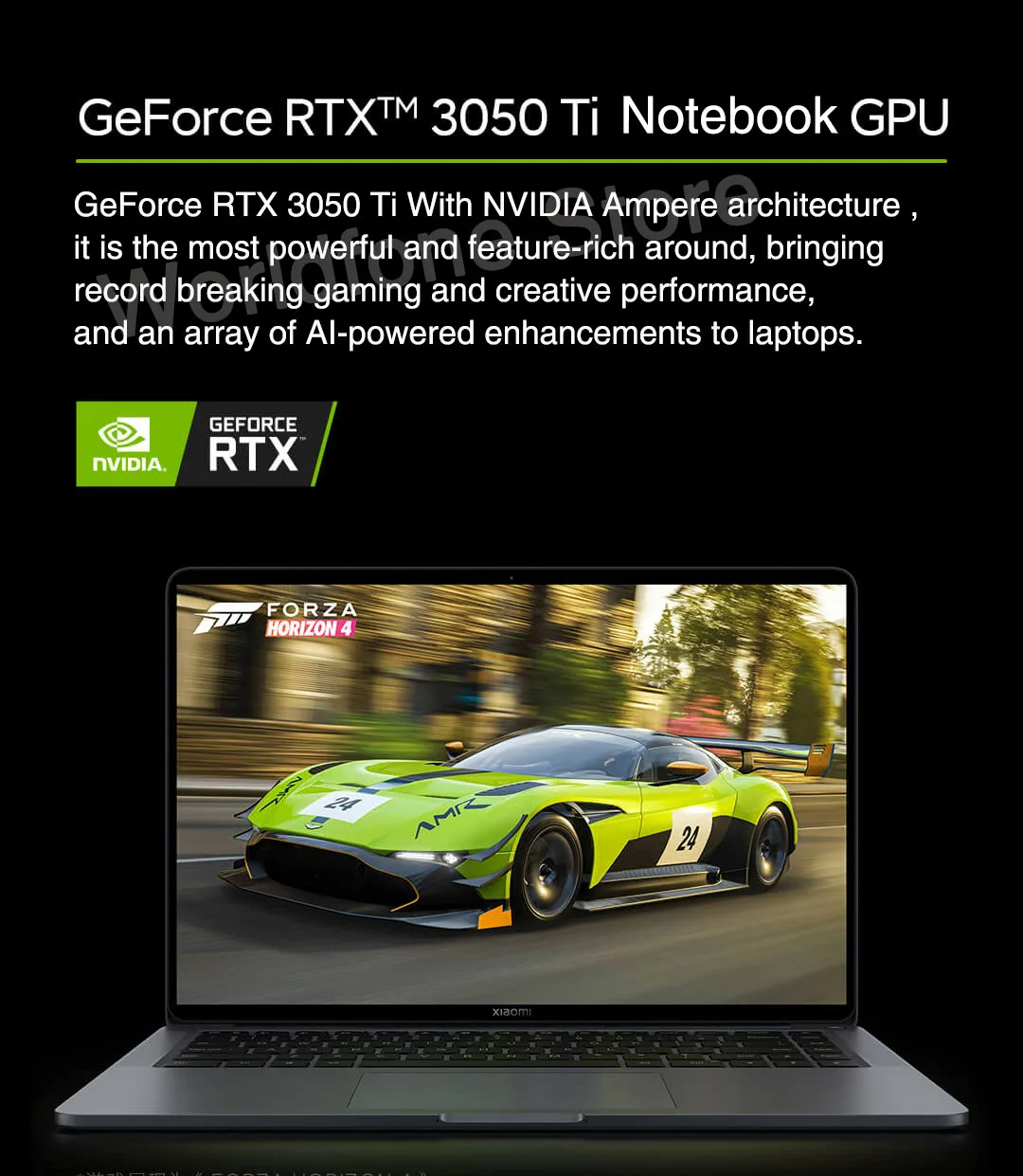 The new NVIDIA® GeForce RTX™ 3050Ti laptop GPU is powered by the award-winning Ampere architecture-NVIDIA's 2nd gen RTX -with new Ray Tracing CoresTensor Cores, and streaming multiprocessors for the most realistic ray-traced graphics and cutting-edge AI features.