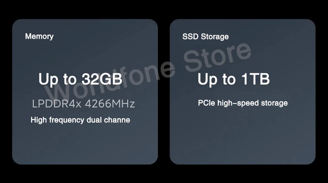 16GB LPDDR4x 4266MHz dual channel memory