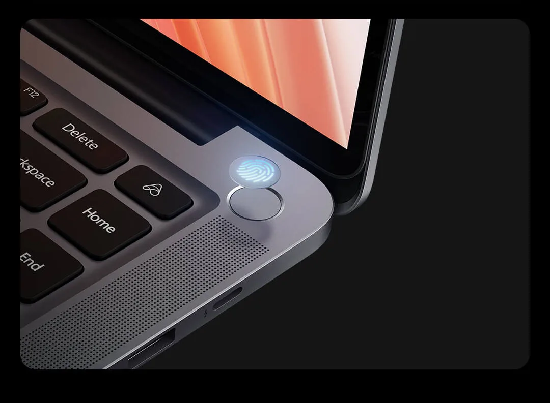 Full-size, backlit keyboard along with a key travel of 1.3mm. There is a built-in ambient light sensor that allows the machine to automatically adjust the lighting of the keyboard as well as the display as per the environment. Further, users can manually adjust keyboard backlight in three different levels.There is also a fingerprint sensor embedded within the power key for one-key boot and unlock functionality.