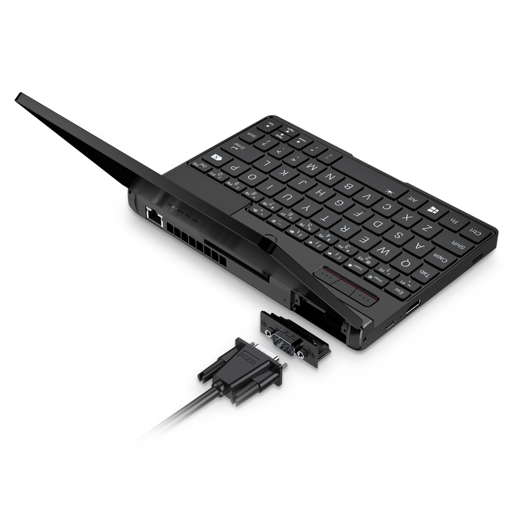 The modular I/O port design allows a tiny PC like Pocket 3 to adapt well in different use cases (by swapping between different expansion modules). The serial port expansion module of Pocket 3 uses the standard EIA RS-232 communication protocol and can connect to various 9-pin serial devices.