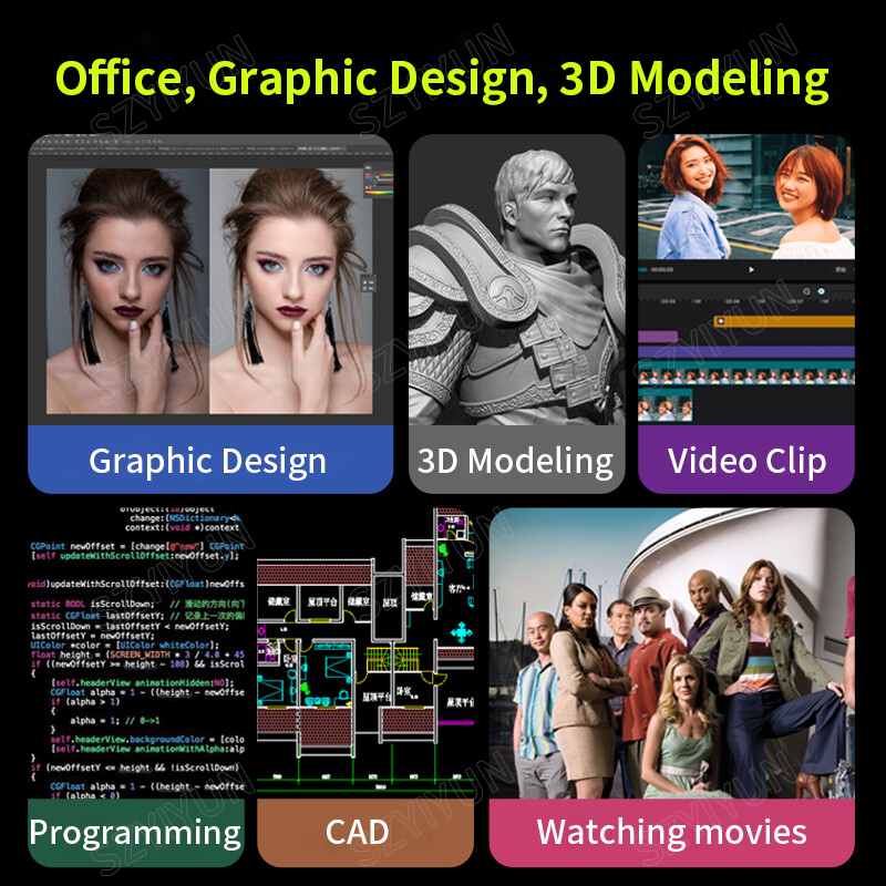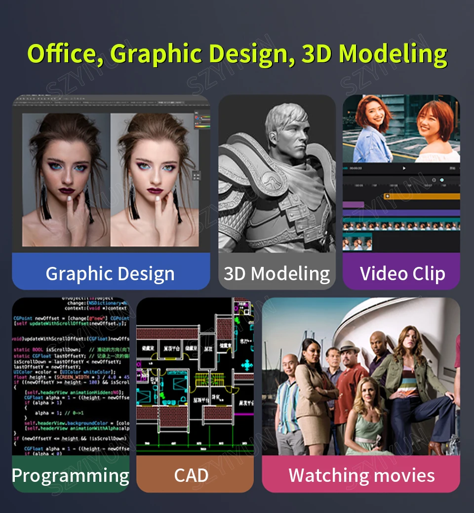 Meet various office software needs, forms, documents, PPT, graphic design, video editing, listening to music, watching movies...