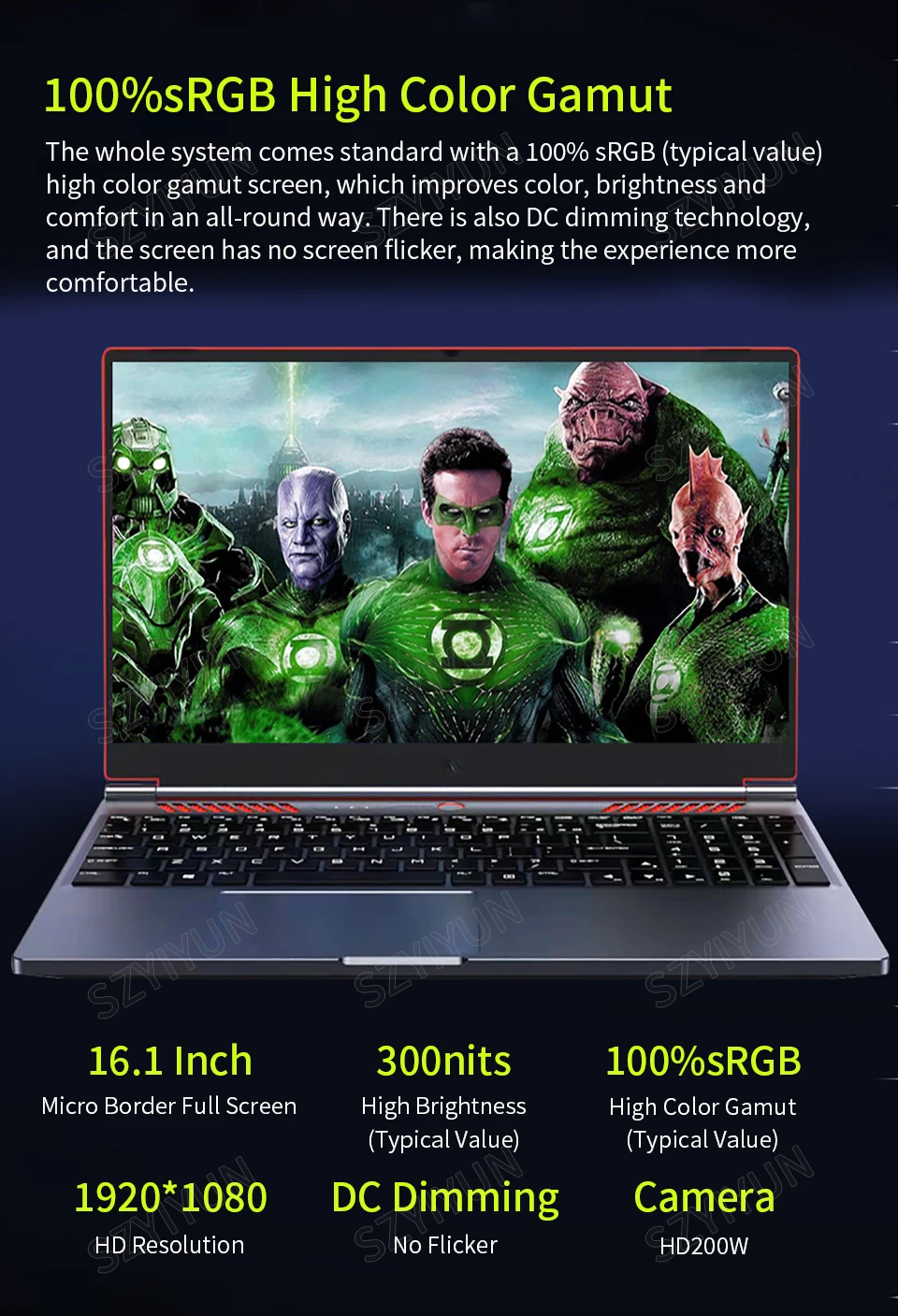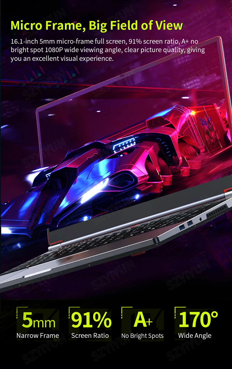 16.1-inch 5mm micro-frame full screen, 91% screen ratio, A+ no bright spot 1080P wide viewing angle, clear picture quality, giving you an excellent visual experience.