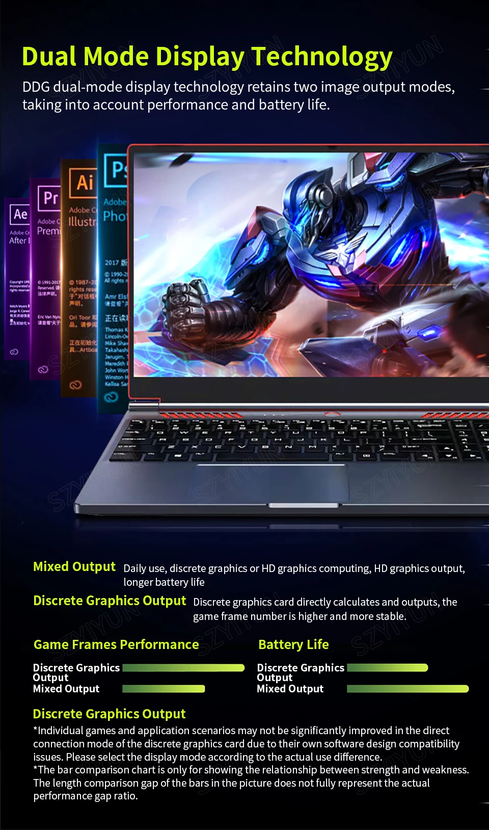 DDG dual-mode display technology retains two image output modes, taking into account performance and battery life.