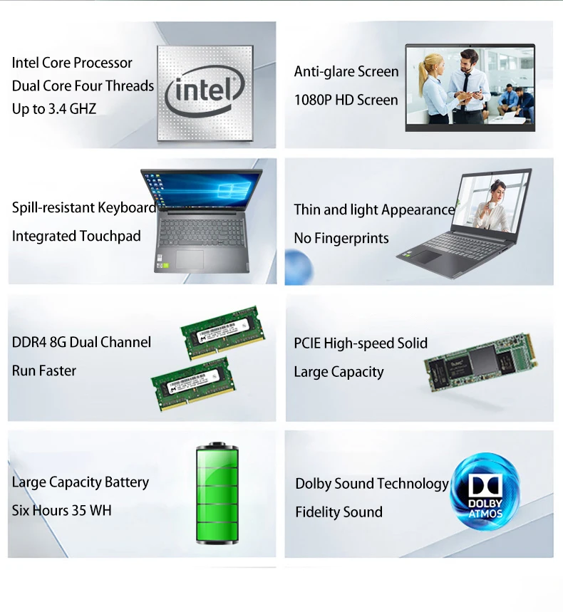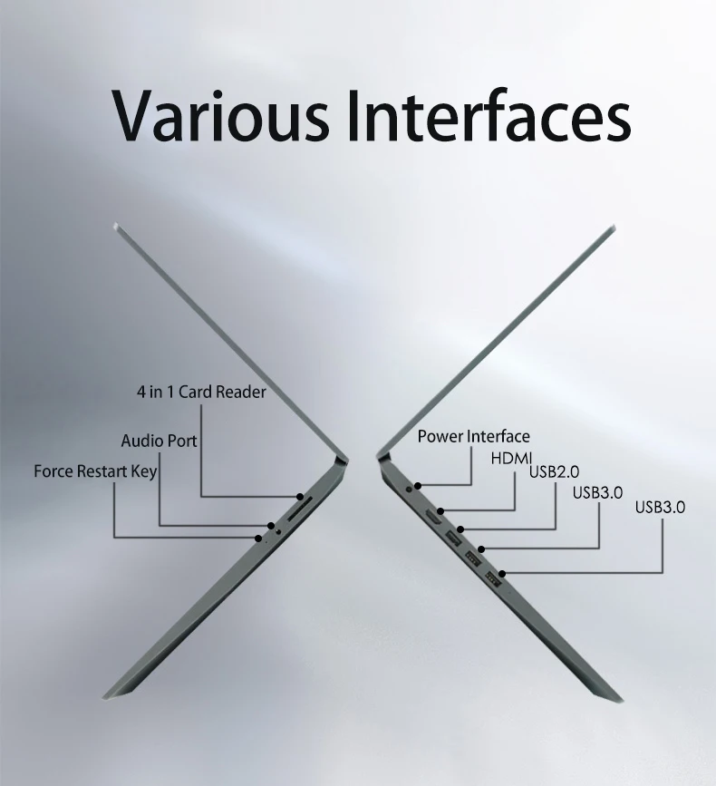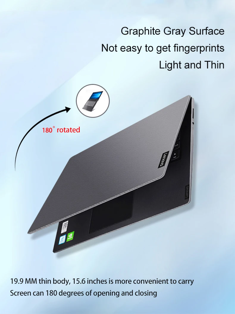19.9 MM thin body, light and thin, 15.6 inches is more convenient to carry, and screen can 180 degrees of opening and closing the most simple and clear!
