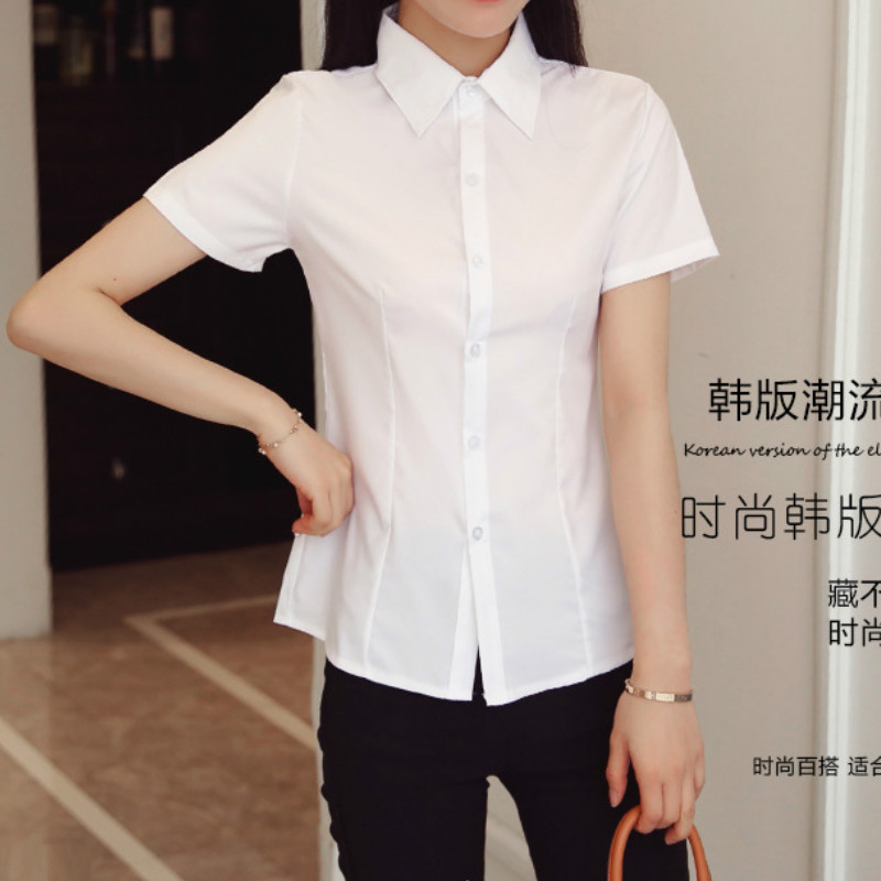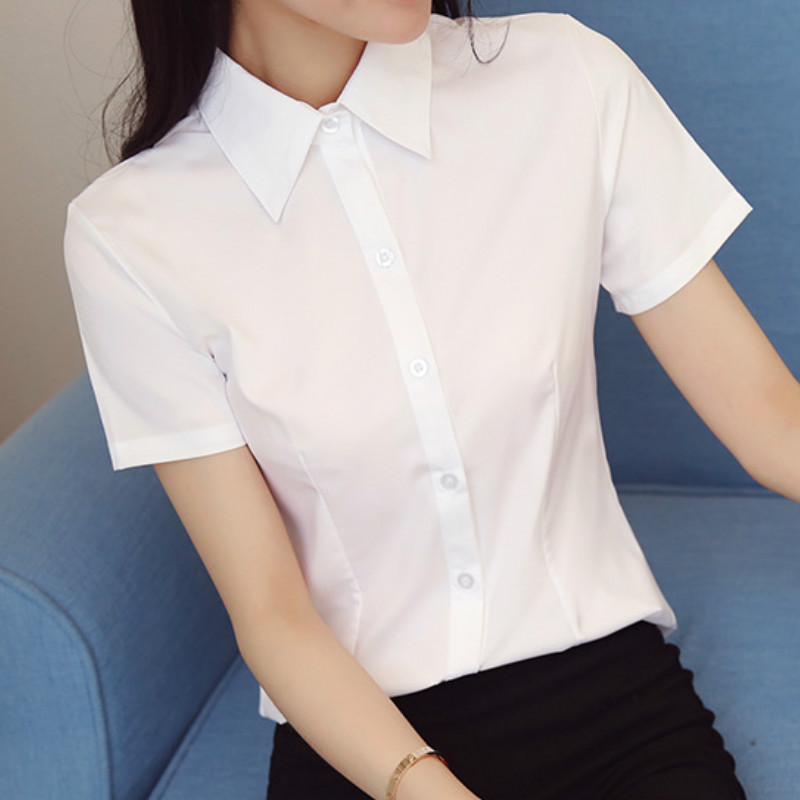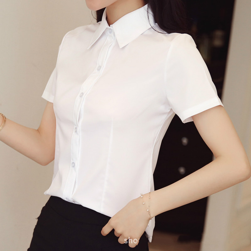 New Korean Slim Fit Women Shirt White Blouse Short Sleeve Summer Office Lady Work Tops Business Shirt Blusas Femininas Elegante