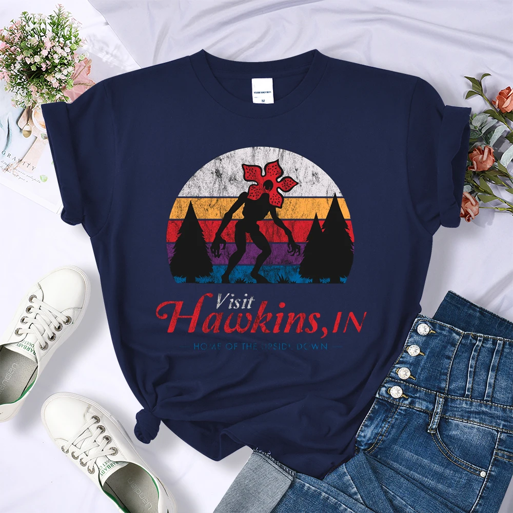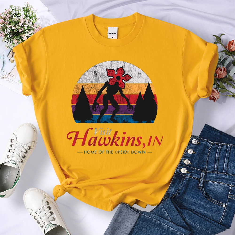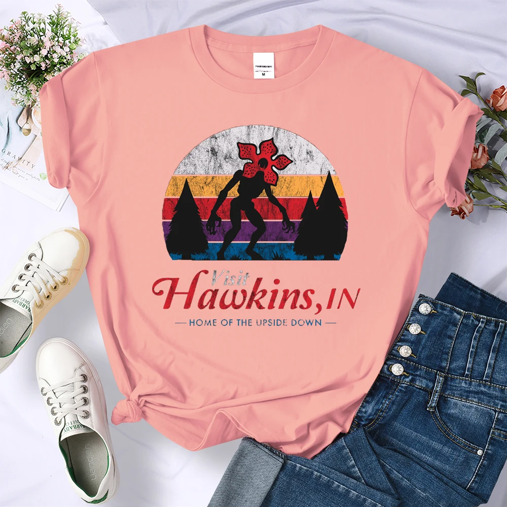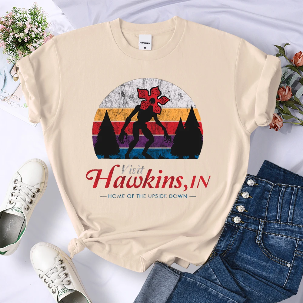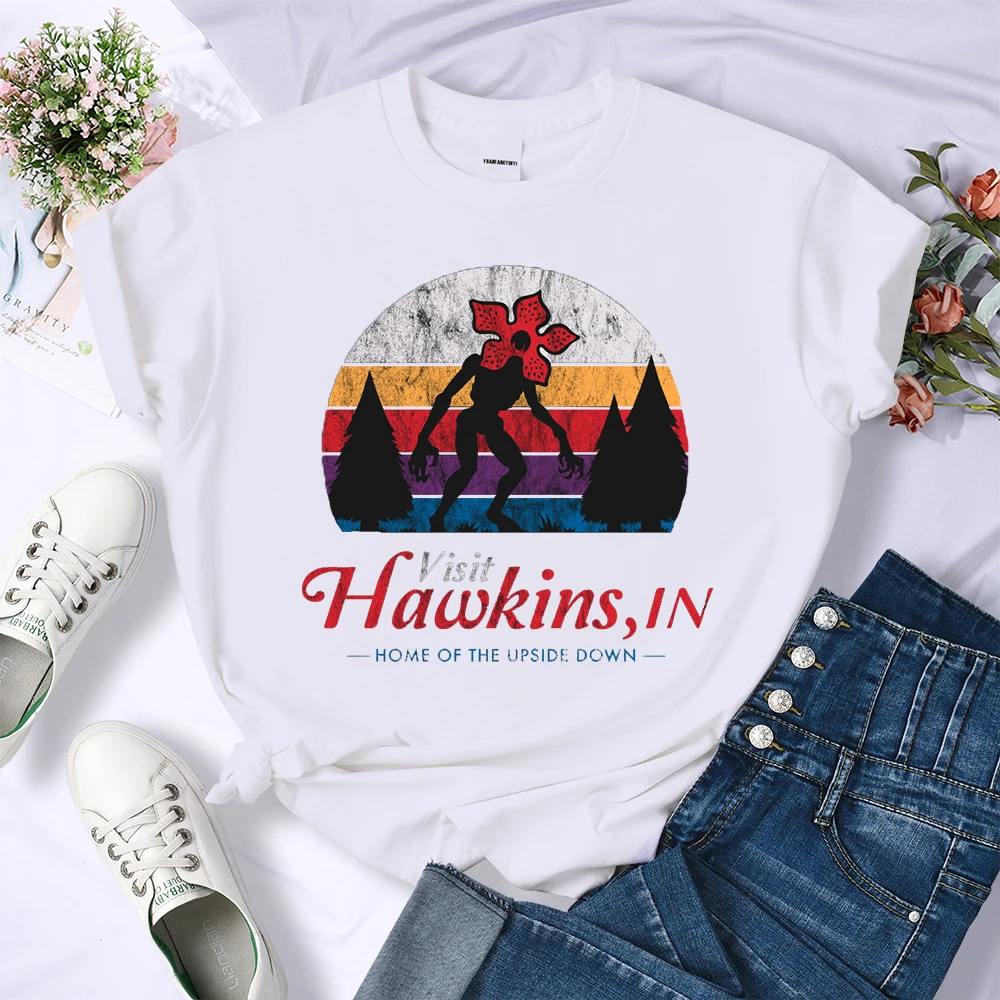 Visit Hawkins Vintage Distressed T Shirt Women Summer Casual Tshirt Fashion Street Crop Top Hip Hop Personality Tshirt Womens