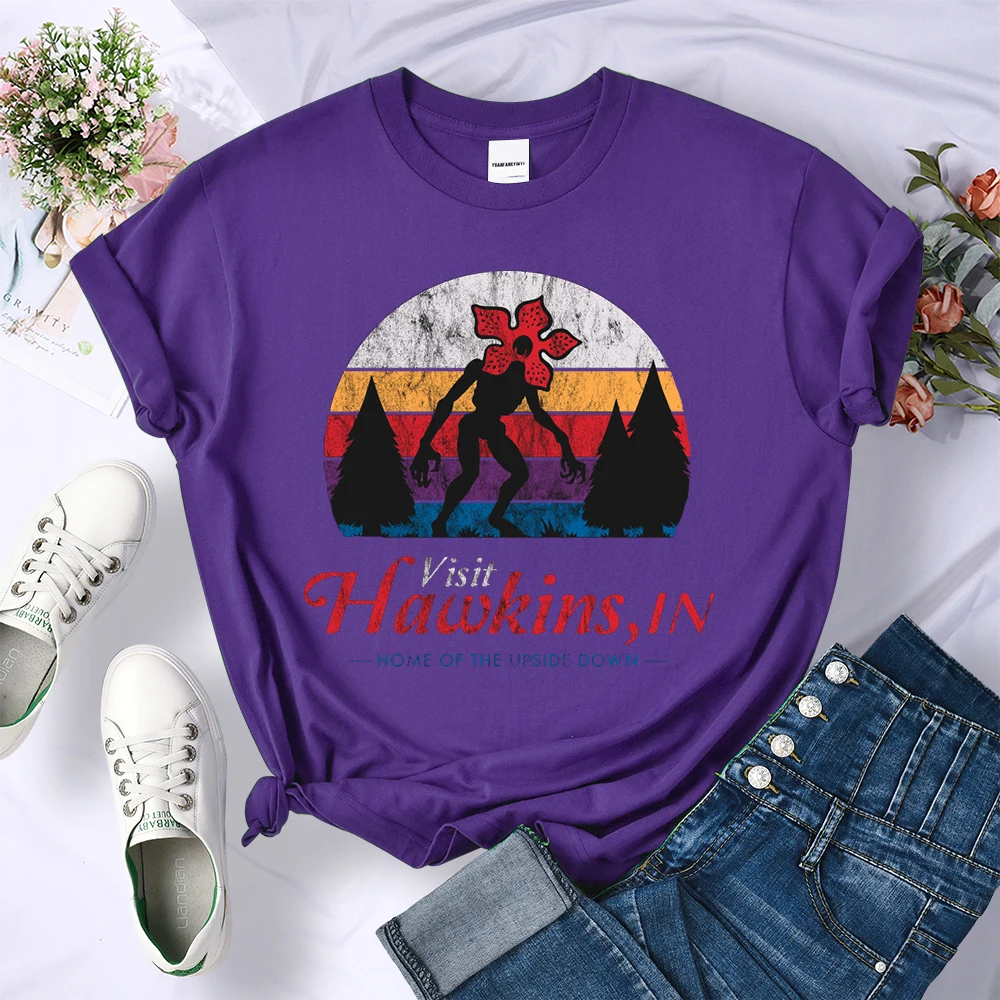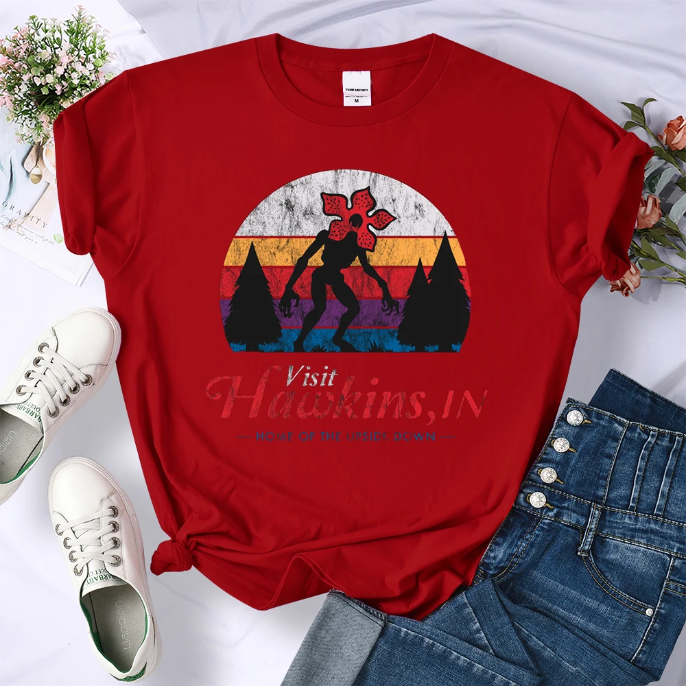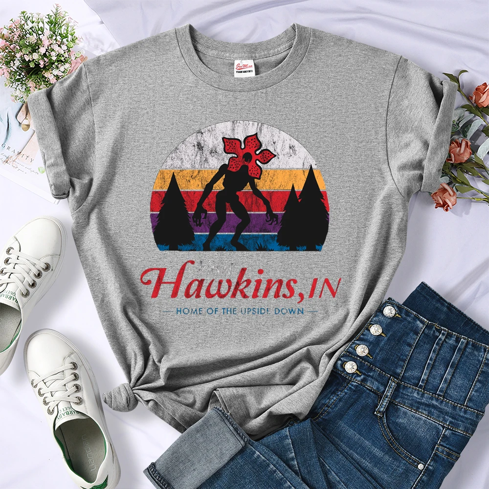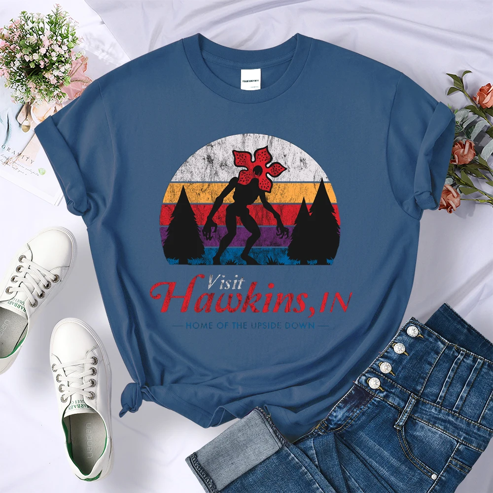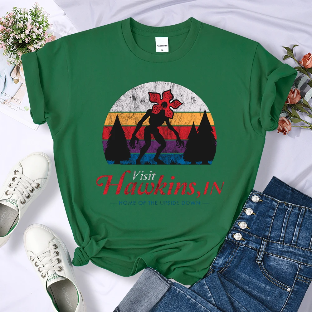 Visit Hawkins Vintage Distressed T Shirt Women Summer Casual Tshirt Fashion Street Crop Top Hip Hop Personality Tshirt Womens