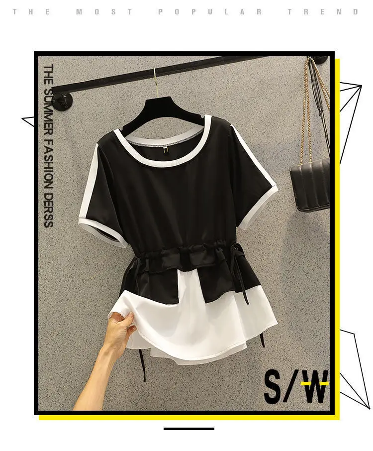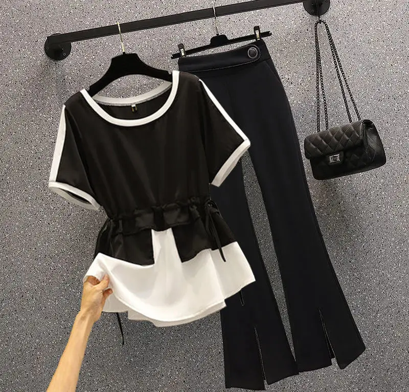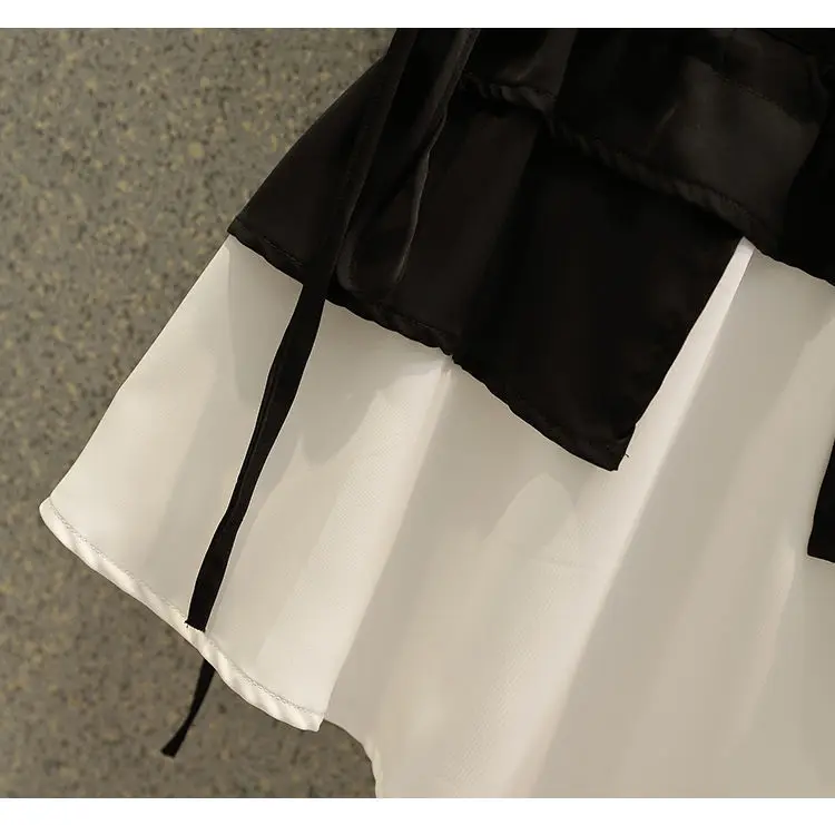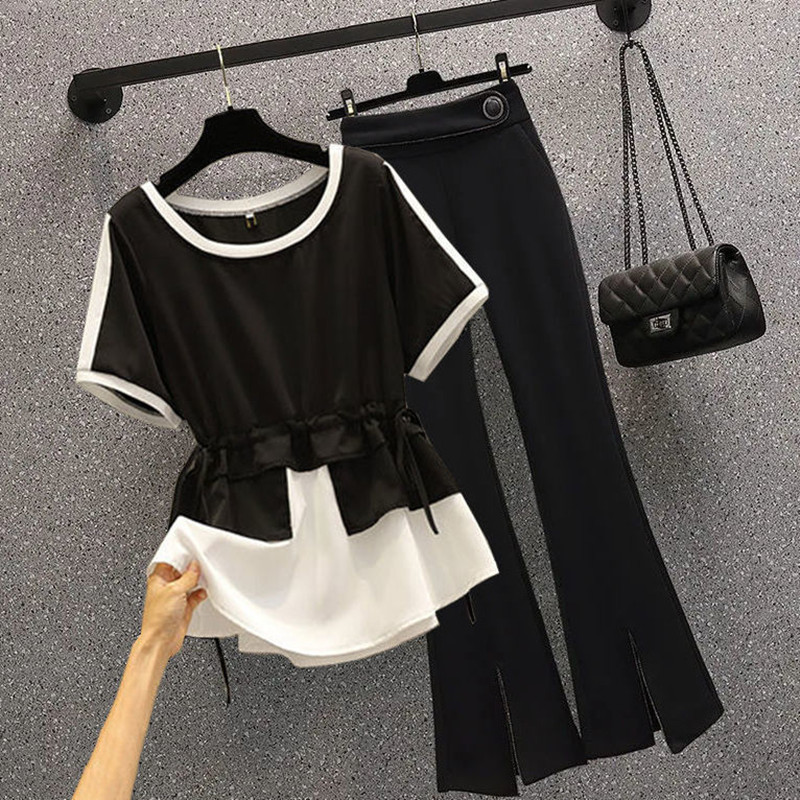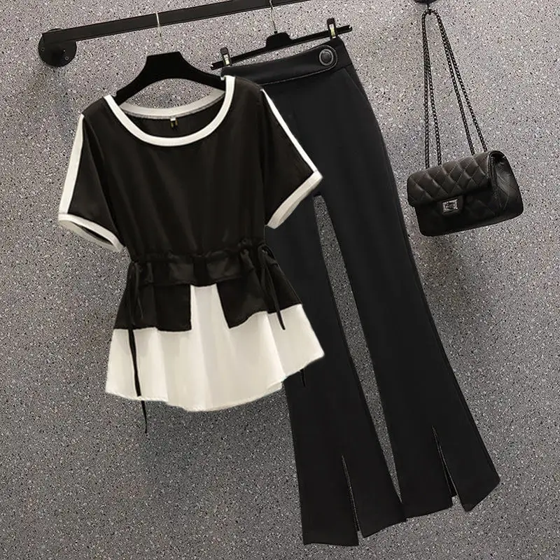 2023 Summer New Elegant Women's Pants Set Fashion Stitching Chiffon Shirt Wide Leg Pants Two-piece Set Female Blazer Blouse