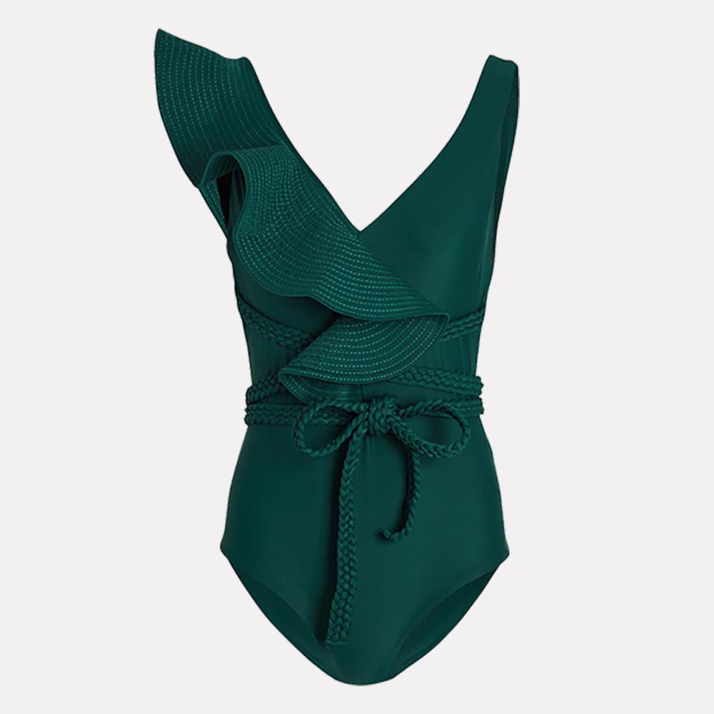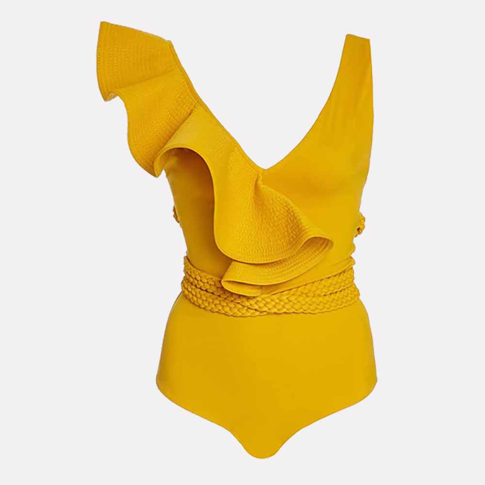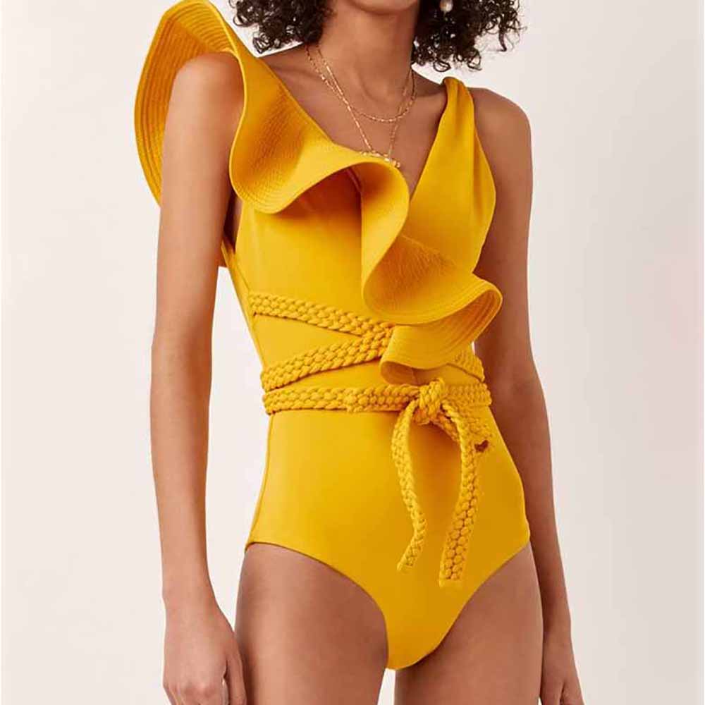 Swimwear Women 2022 Sexy One Piece Swimsuits Deep-v Beach Wear Shoulder Solid Ruffled Plus Size Bathing Suit Summer Micro Bikini