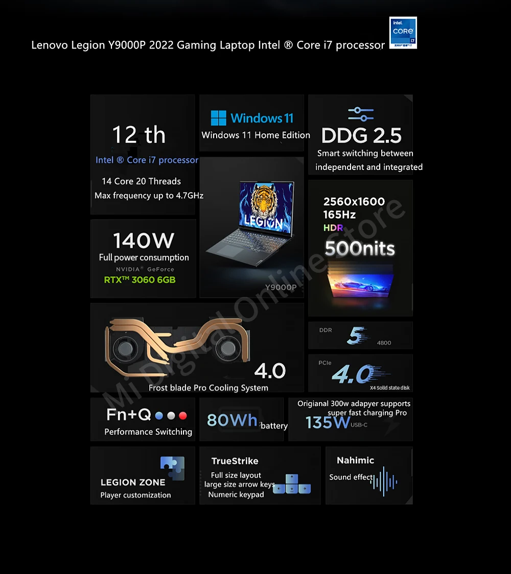 Lenovo Legion Y9000P 2022 16inch Gaming Laptop 12th Gen Intel Core i7-12700H