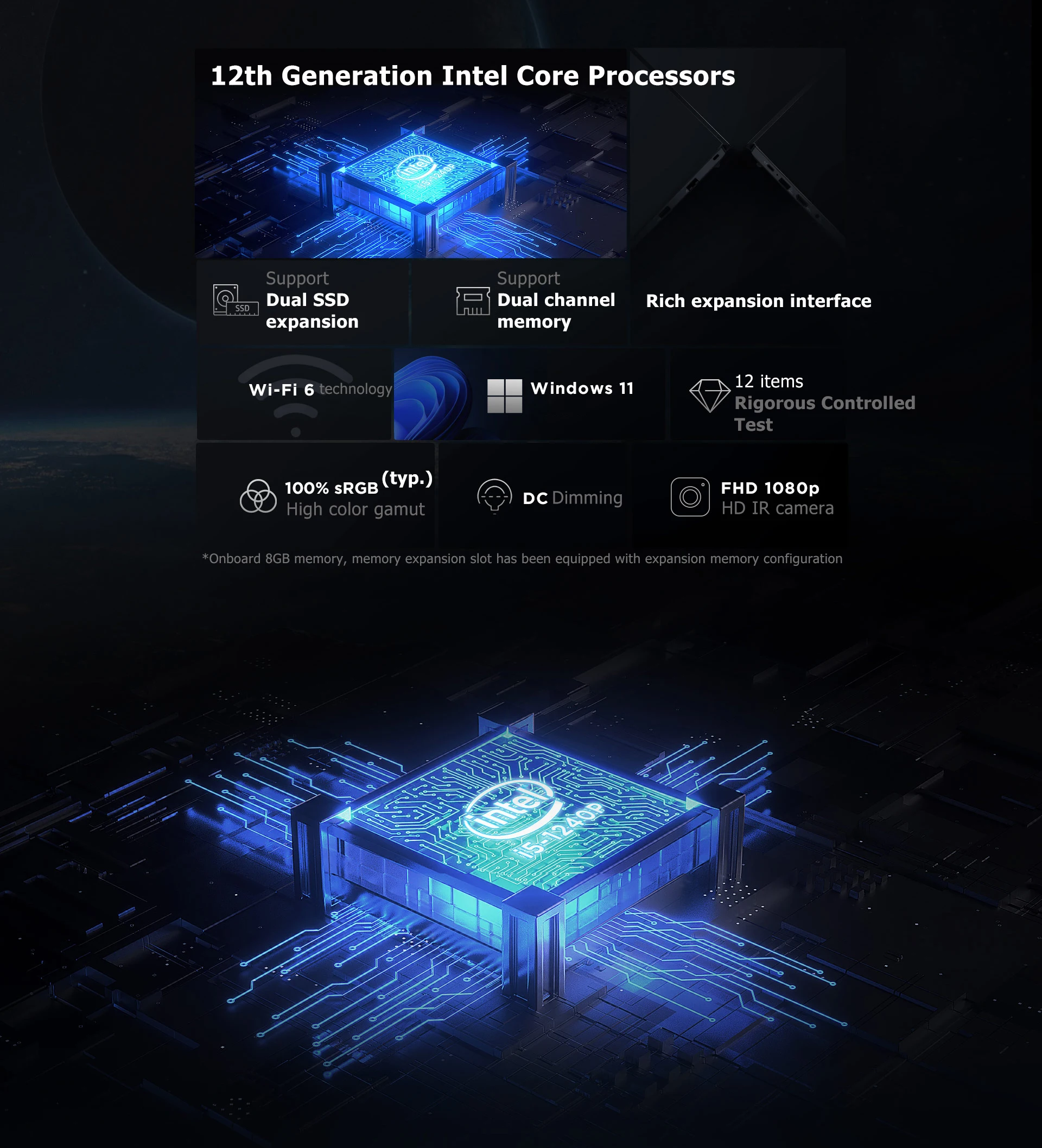 Equipped with the new 12th generation Intel Core i7-1260P processor, using a new "large and small core heterogeneous" design, 12-core 16-thread architecture, while the energy efficiency ratio has been greatly upgraded,