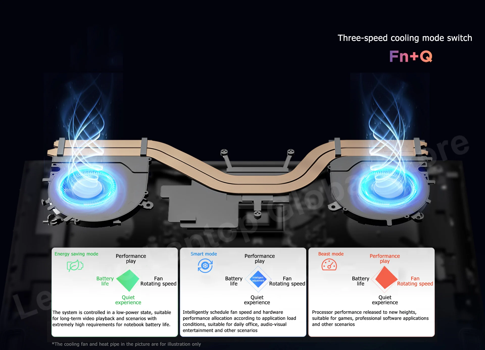 The well-known intelligent heat dissipation adjustment, the three-speed switchable heat dissipation mode, can switch between the energy-saving mode with long battery life, the intelligent mode with balanced and worry-free performance, and the beast mode with full performance release, giving you a feeling of control like a manual one, you can choose at will Desired performance mode.