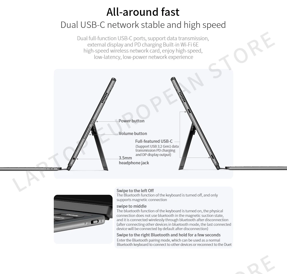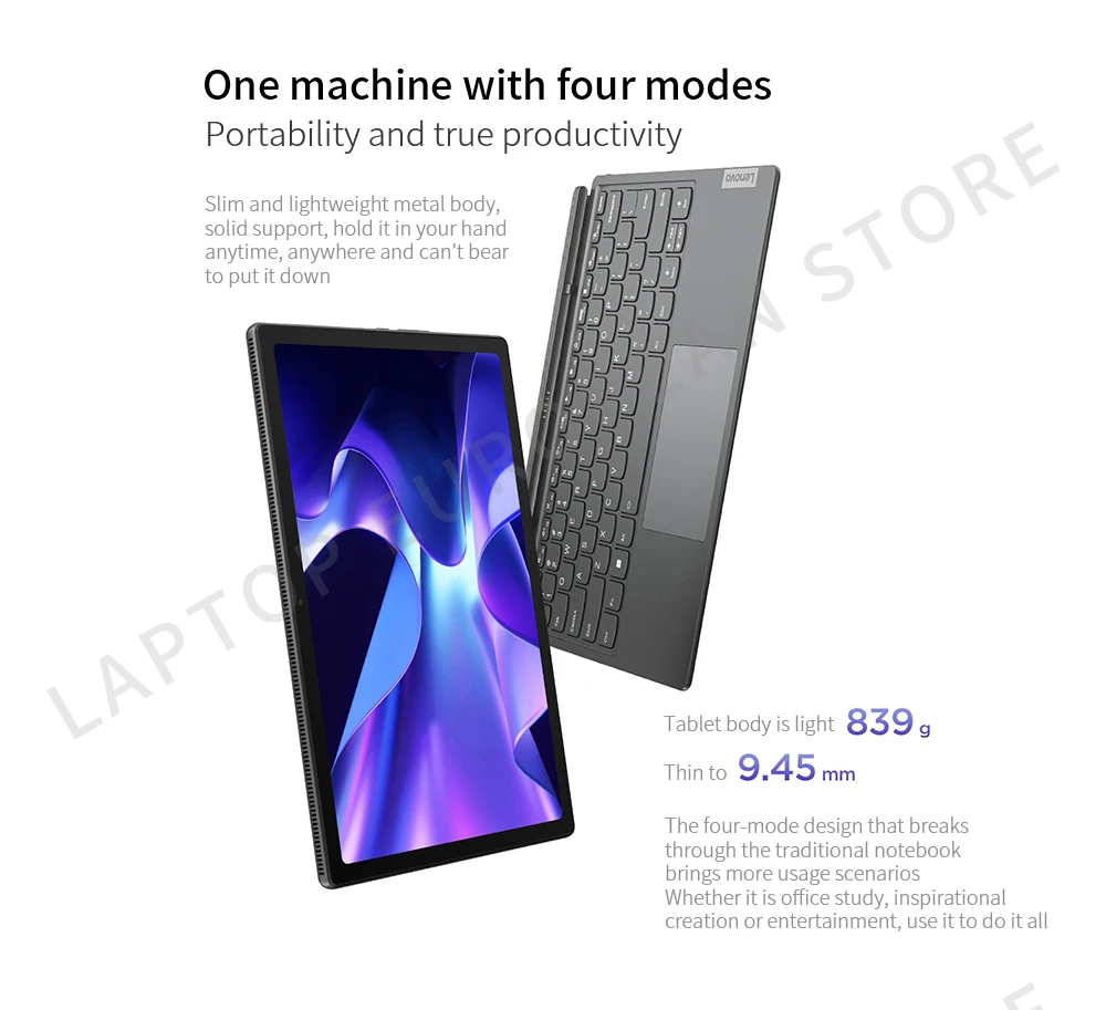 Weight: The tablet body is light about 839g + the keyboard is about 350g