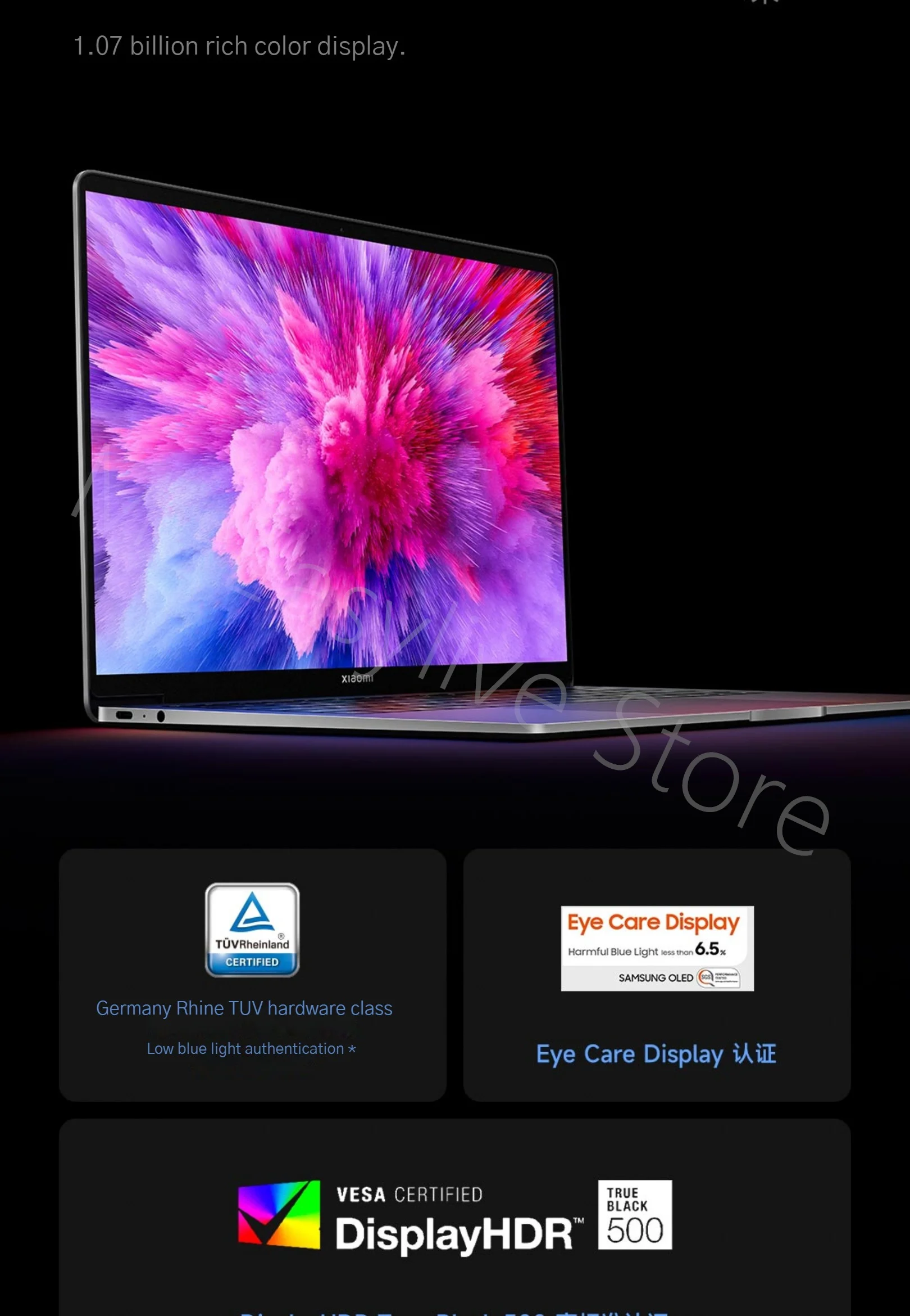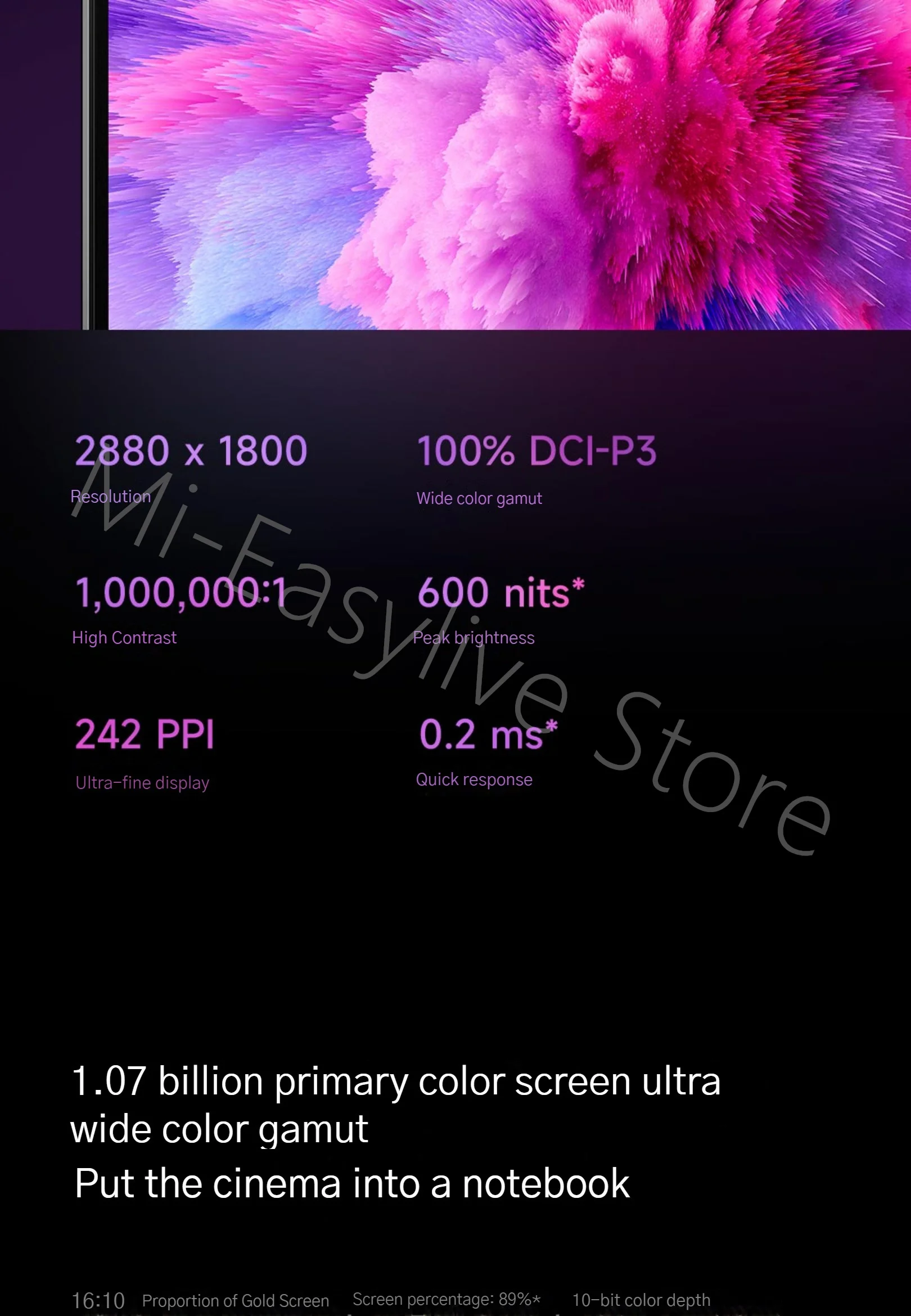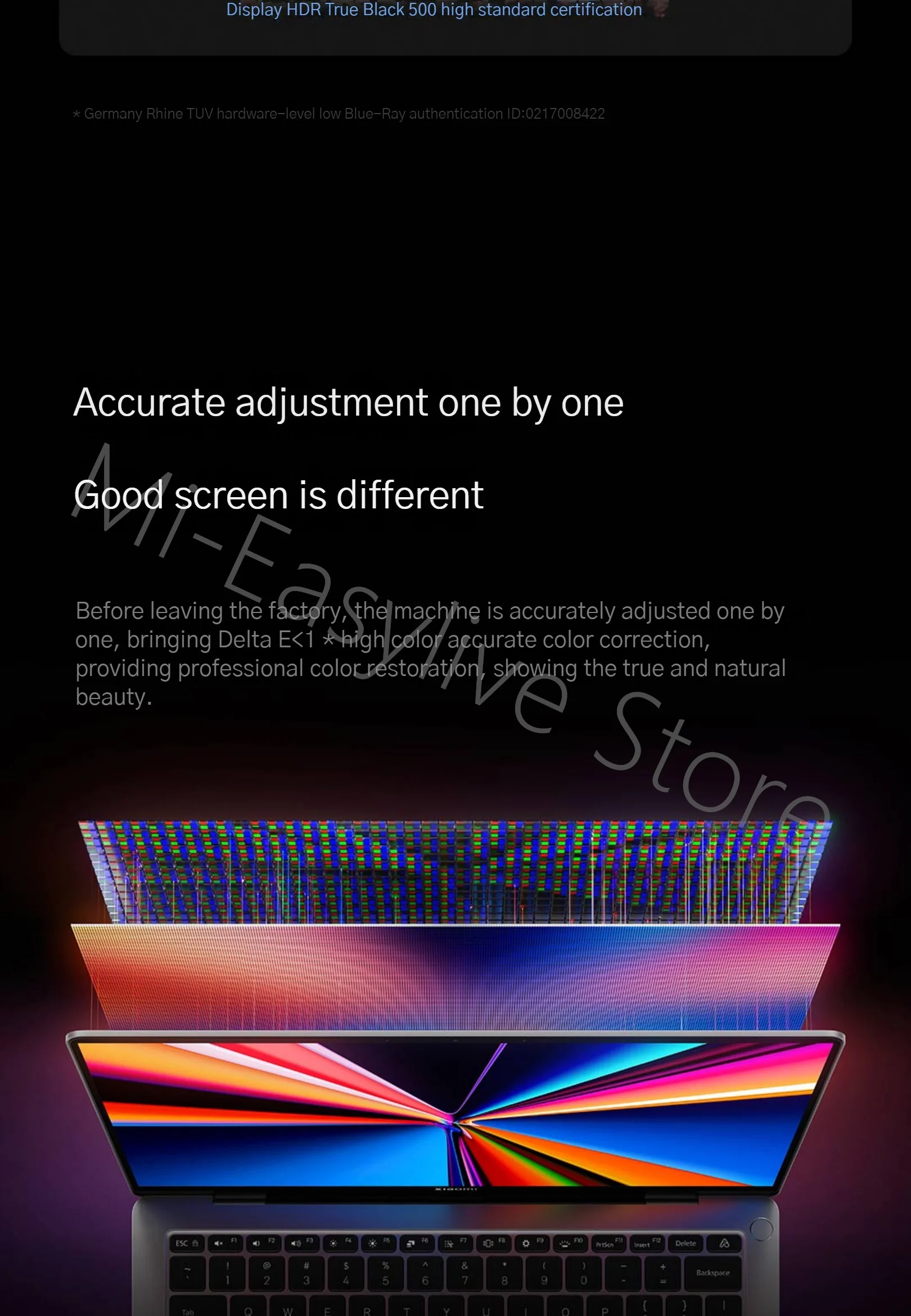 * Delta E < 1, the data comes from Xiaomi Lab, the data is the typical value of the average color level measured under the maximum brightness of the screen (such as: power on, the screen is in a stable state, and functions that affect brightness such as automatic brightness adjustment are turned off).