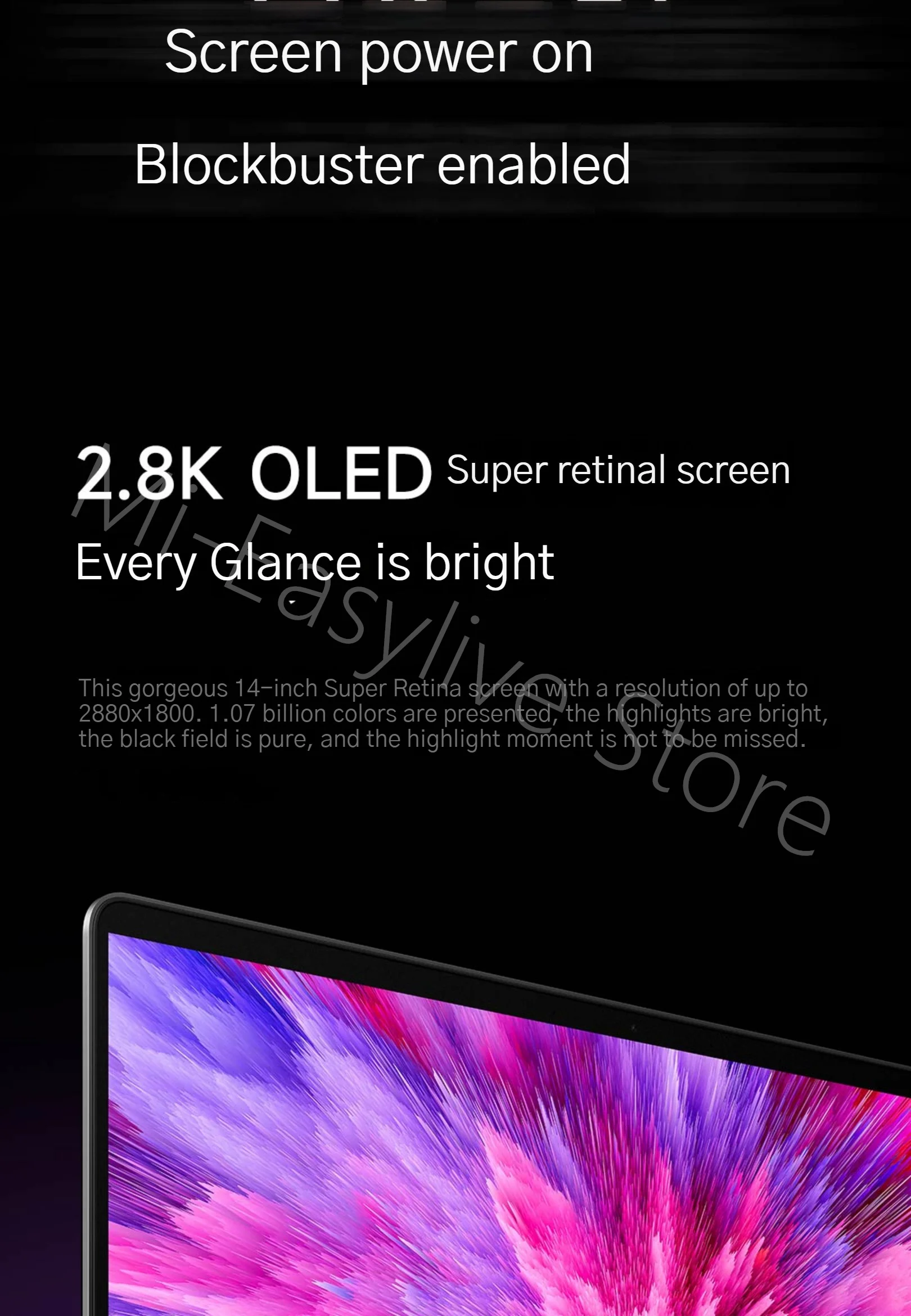 600nits peak brightness, 1000000:1 contrast ratio,