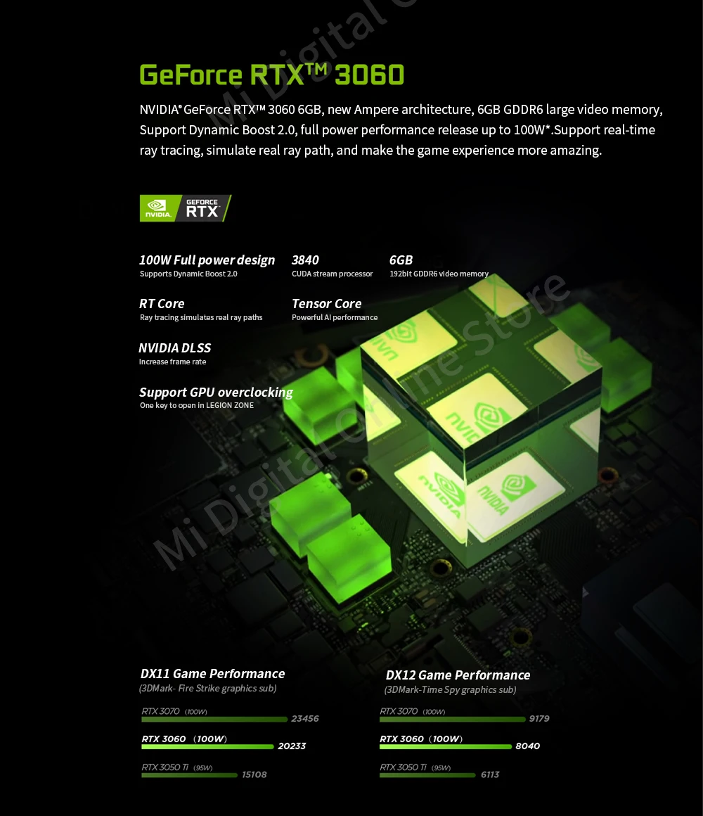 Graphics Chip: NVIDIA® GeForce RTX™ 3050 Ti/NVIDIA® GeForce RTX™ 3060/NVIDIA® GeForce RTX™ 3070