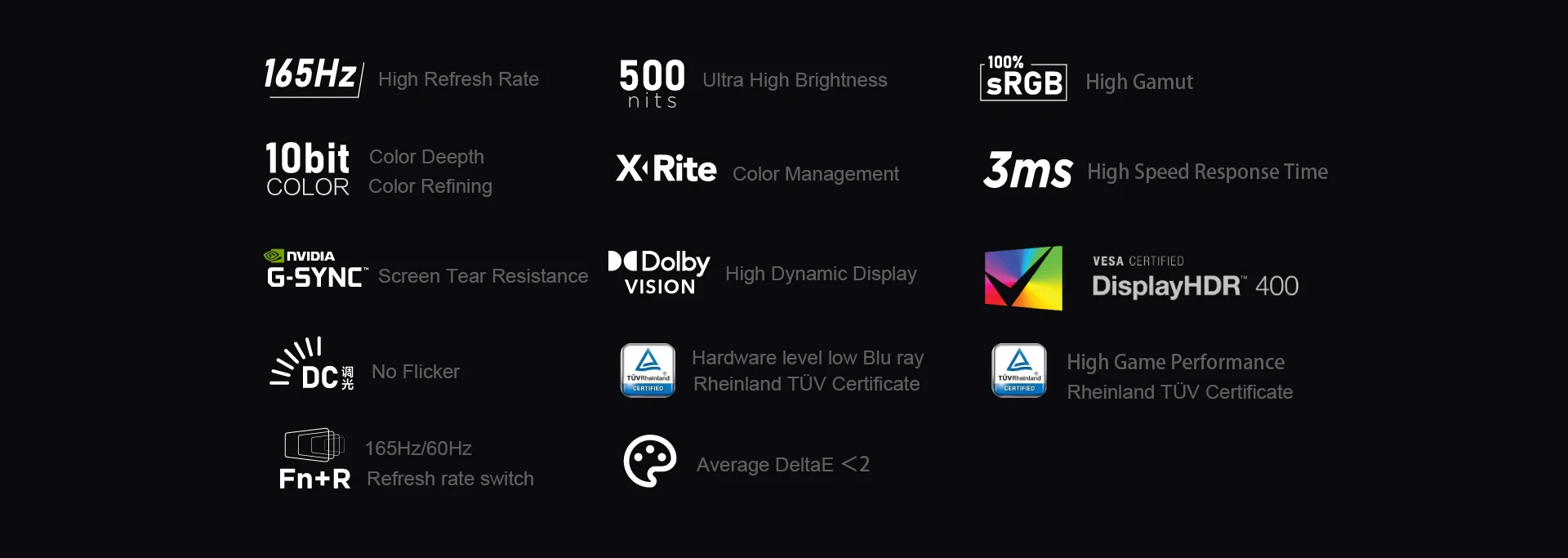 1) 16 Inch 2560x1600 sRGB Display, 165Hz refresh rate