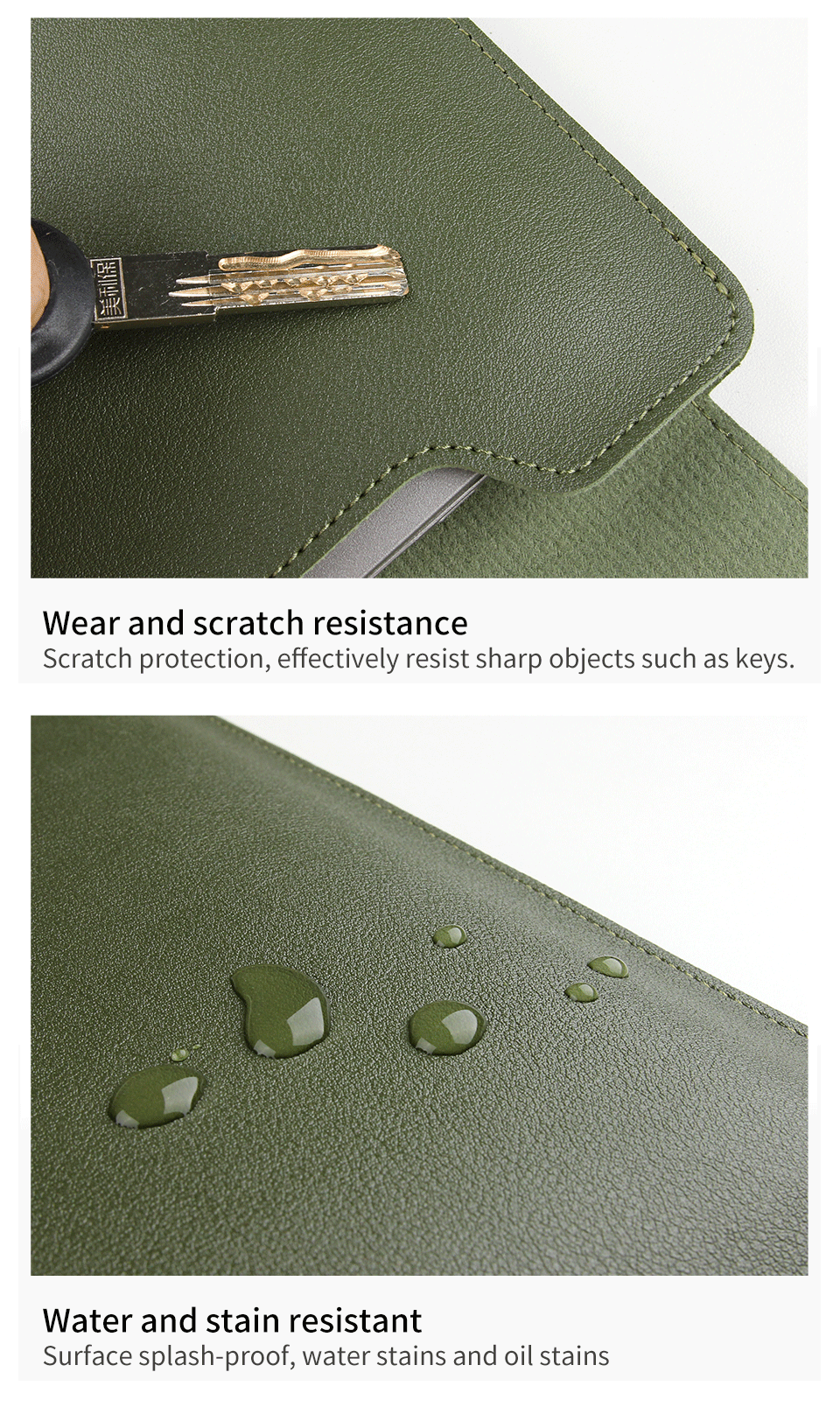 2. Made of high quality waterproof leather and soft lining to prevent your laptop from scratches and daily damage. Protects your device from shocks and dust. Soft touch and smooth surface make it easy to clean.