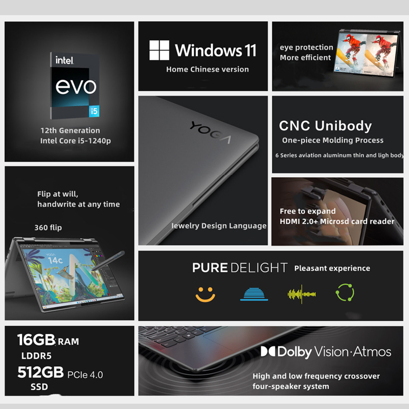 Lenovo Yoga 14c Laptop 2022 Intel Core i5-1240P 16GB RAM 512GB Integrated Graphics 14 Inch Touch Screen Thin Light Notebook