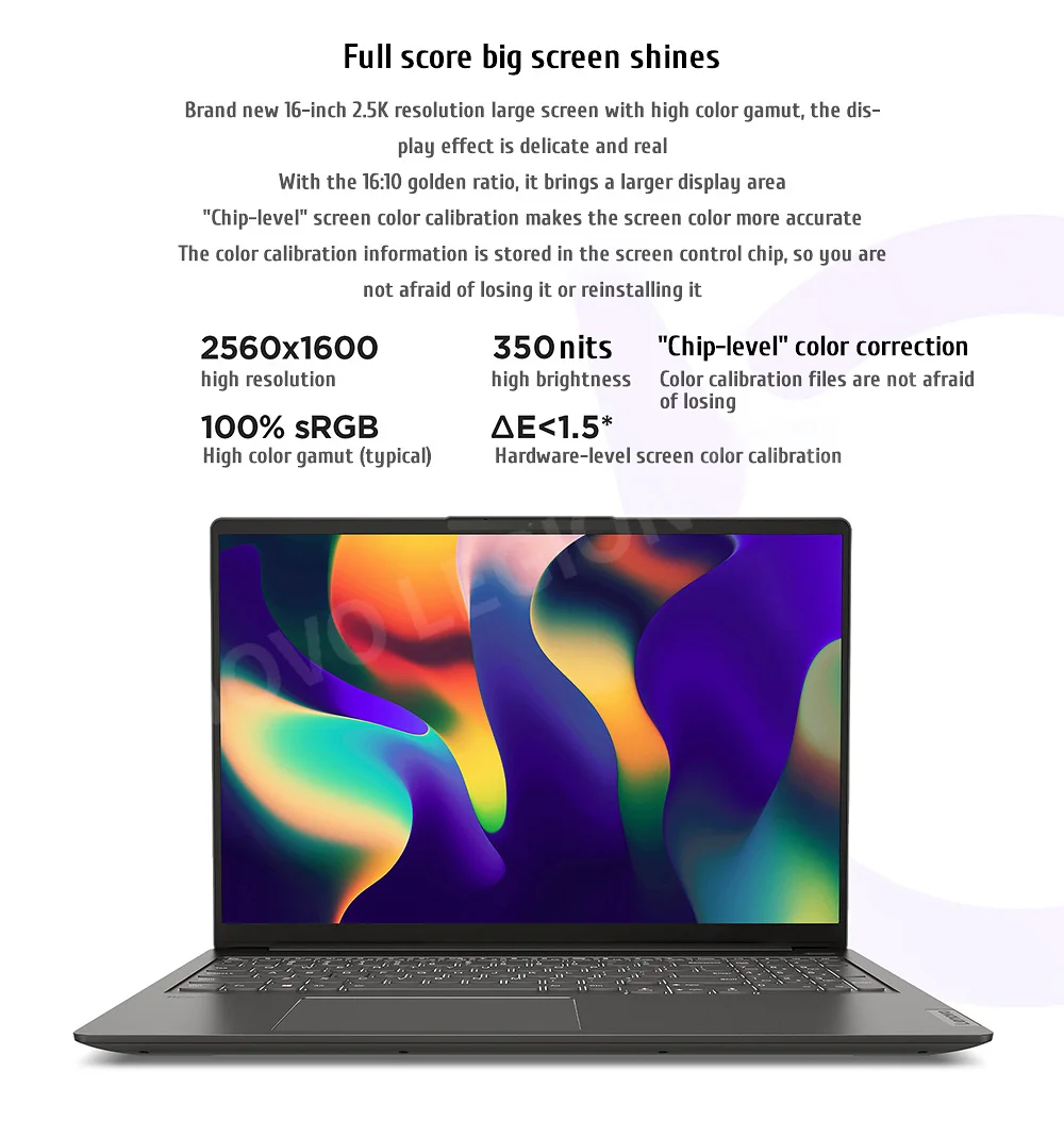 Brand new 16-inch 2.5K resolution large screen with high color gamut, the dis-