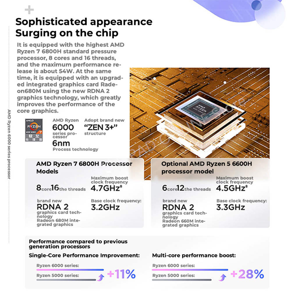 CPU model | AMD R5 6600H / AMD R7 6800H |