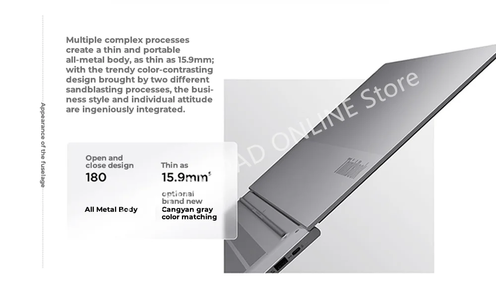 all-metal body, as thin as 15.9mm;with the trendy color-contrastingdesign brought by two differentsandblasting processes, the busi-ness style and individual attitudeare ingeniously integrated.