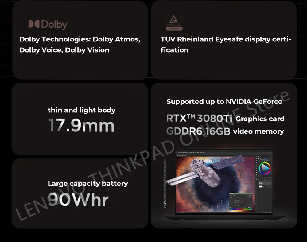 Display chip | NVIDIA GeForce RTX 3060-MaxQ / NVIDIA GeForce RTX 3080Ti-MaxQ / NVIDIA GeForce RTX 3080- MaxQ |