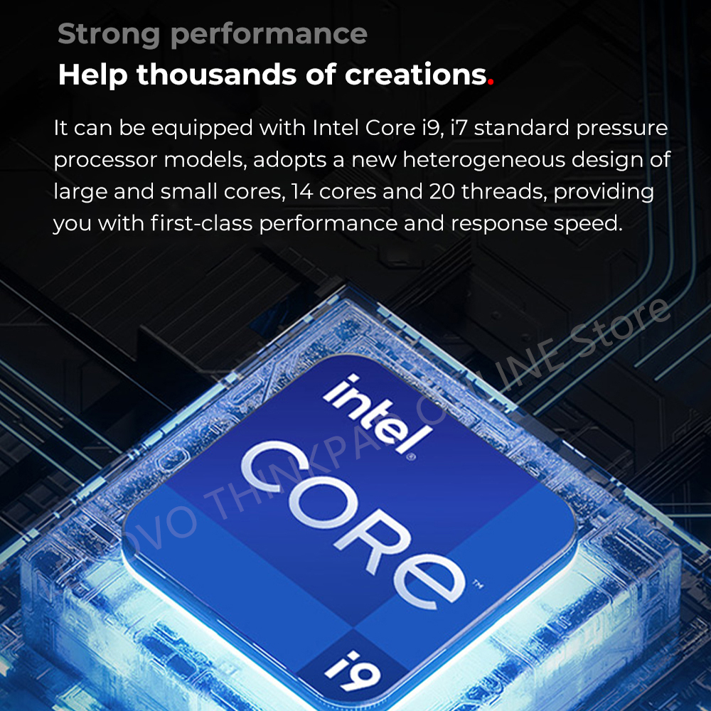 lt can be equipped with Intel Core i9, i7 standard pressureprocessor models, adopts a new heterogeneous design oflarge and small cores,