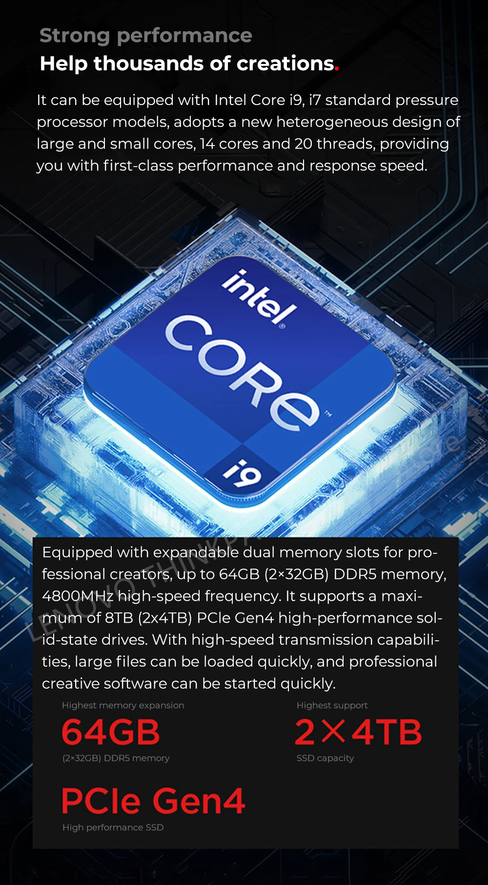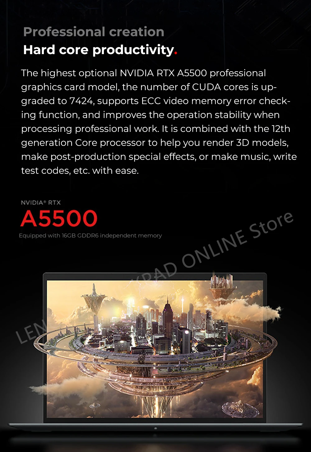 It is combined with the 12thgeneration Core processor to help you render 3D models,make post-production special effects, or make music, writetest codes, etc. with ease.
