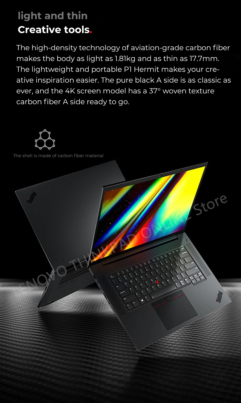 The high-density technology of aviation-grade carbon fibermakes the body as light as 1.81kg and as thin as 17.7mm.