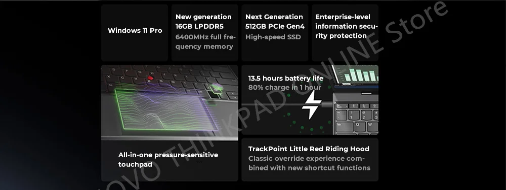 The new ThinkShutter electronic camera switch, through a more advanced elec-tronic structure, can turn on or block the camera on demand, and the switch can be completedwith a touch of a shortcut key combination, which protects privacy and security, The new push-type fingerprint recognition key is located on the left side of the afrow key,