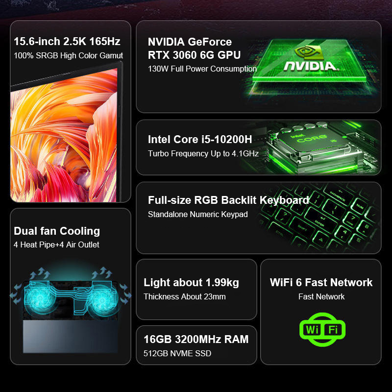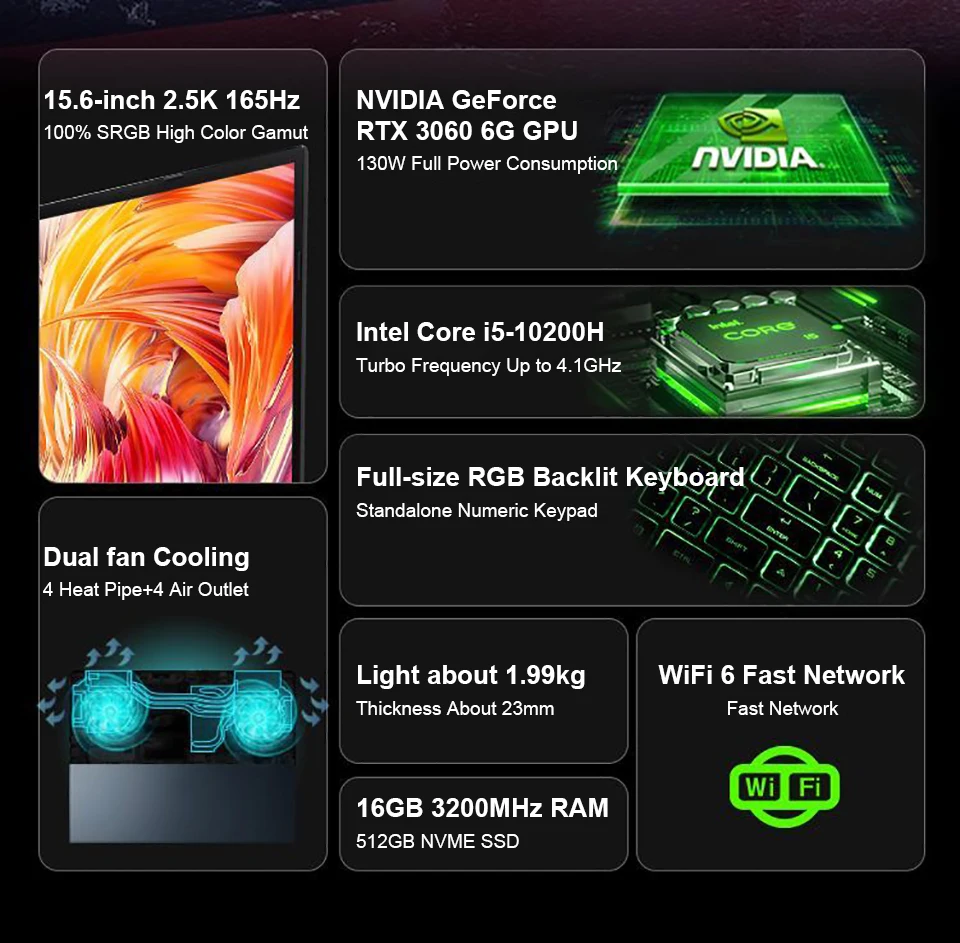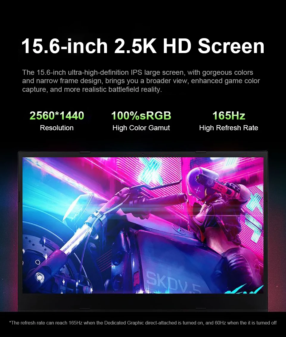The 15.6-inch ultra-high-definition IPS large screen, with gorgeous colors and narrow frame design, brings you a broader view, enhanced game color capture, and more realistic battlefield reality.