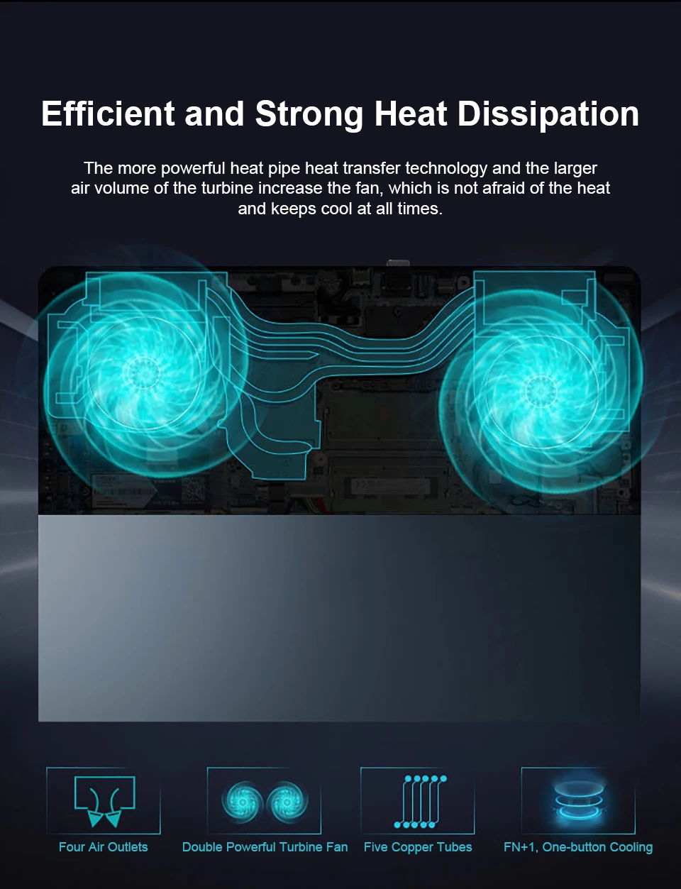 The more powerful heat pipe heat transfer technology and the larger air volume of the turbine increase the fan, which is not afraid of the heat and keeps cool at all times.