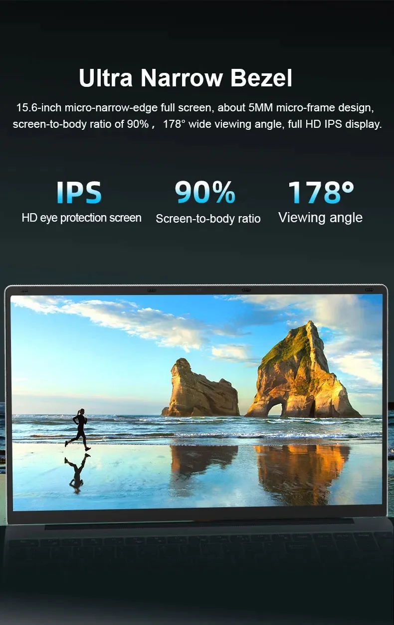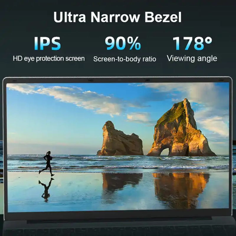 15.6 inch micro narrow edge full screen,about 5mm micro frame design,screen to body ratio to 90%,178° wide viewing angle, full HD IPS display.