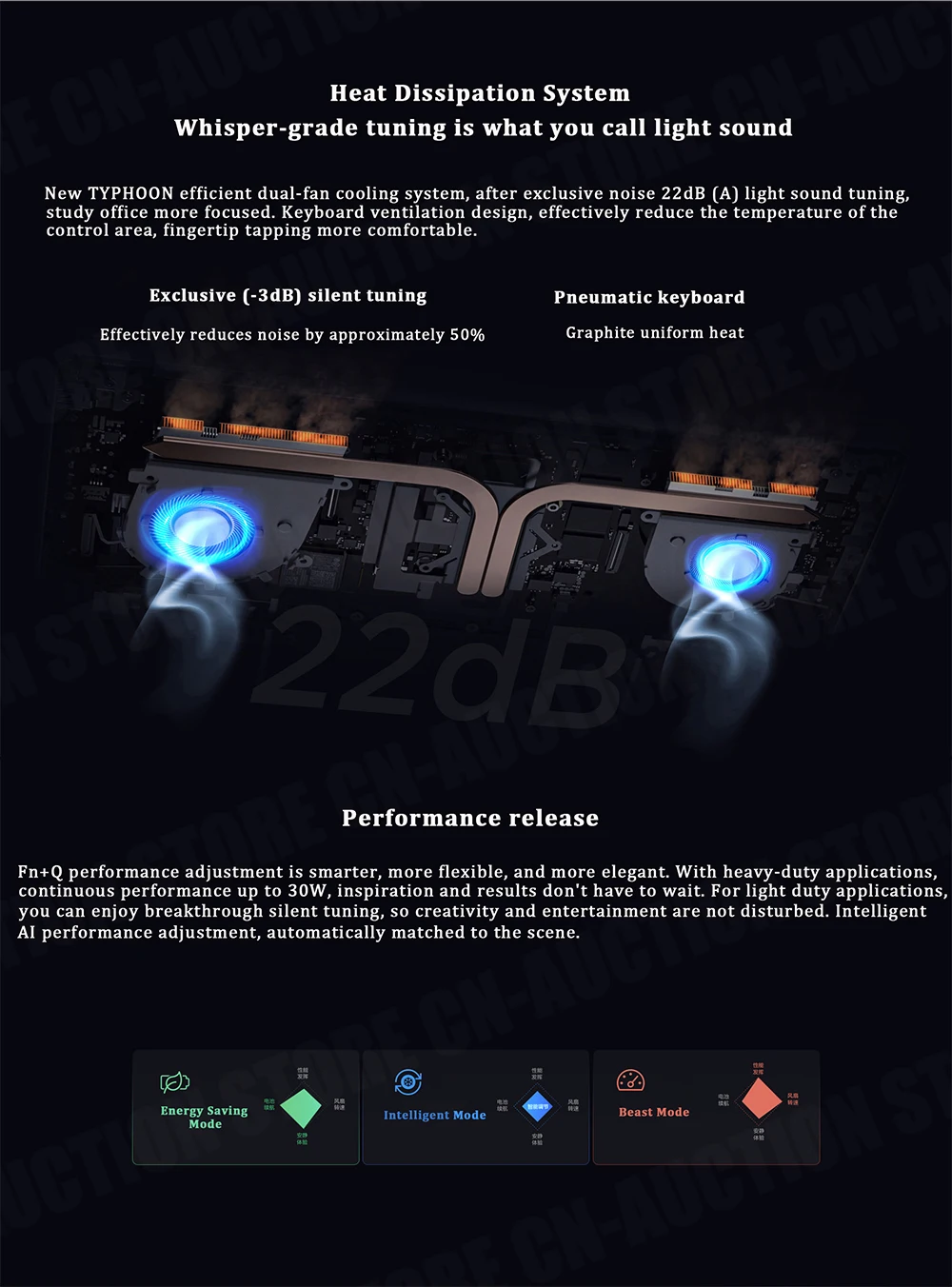 New TYPHOON efficient dual-fan cooling system, after exclusive noise 22dB [A) light sound tuning,
