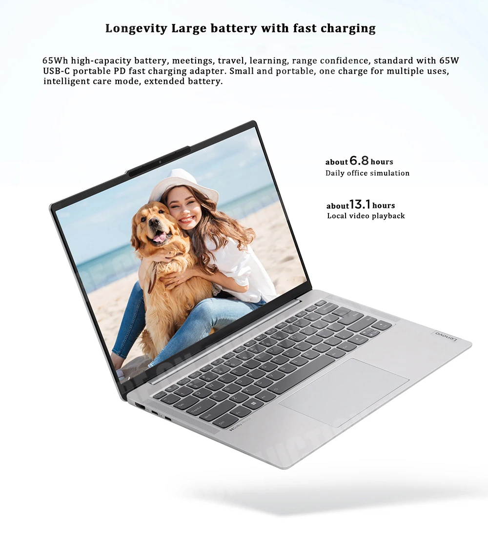 65Wh high-capacity battery, meetings, travel, learning, range confidence, standard with 65W