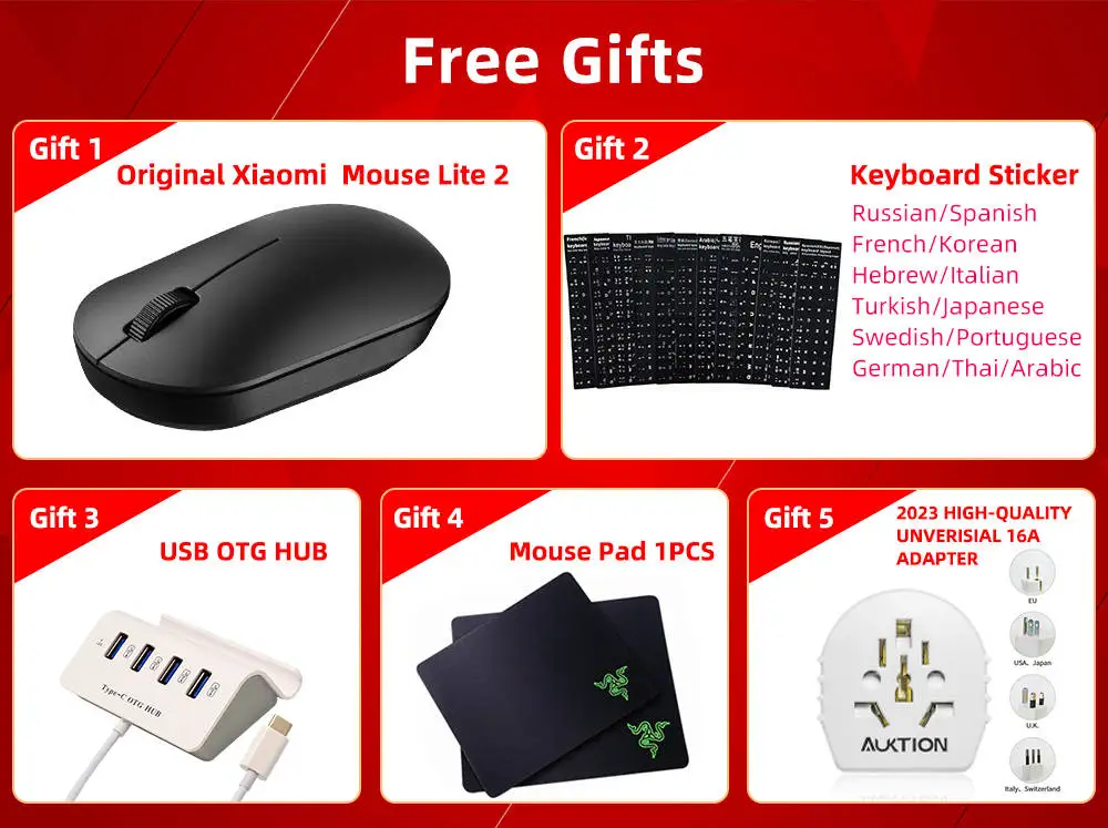 Free Gifts(Mini HUB + Mi 2Gen Wireless Mouse + Mouse Pad + Keyboard Sticker)
