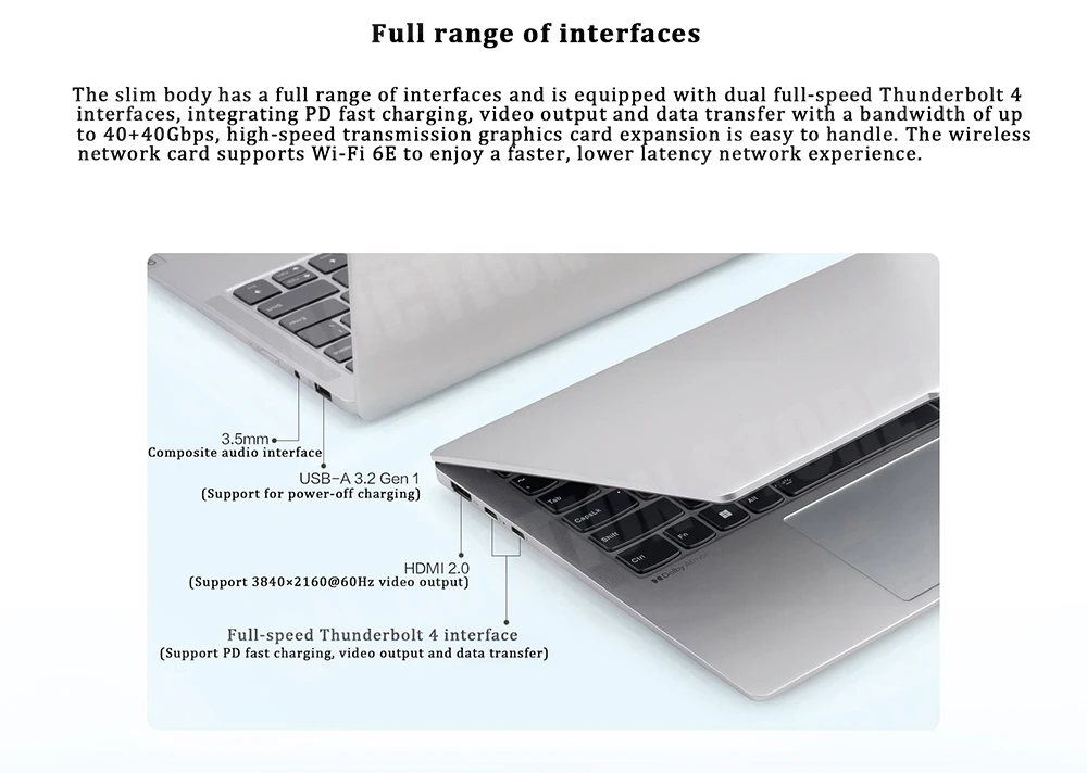 The slim body has a full range of interfaces and is equipped with dual full-speed Thunderbolt 4
