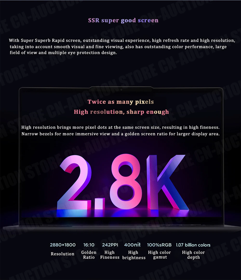 Screen type: 100% sRGB high color gamut 120Hz high refresh rate 400 nits IPS matte low blue light eye protection screen
