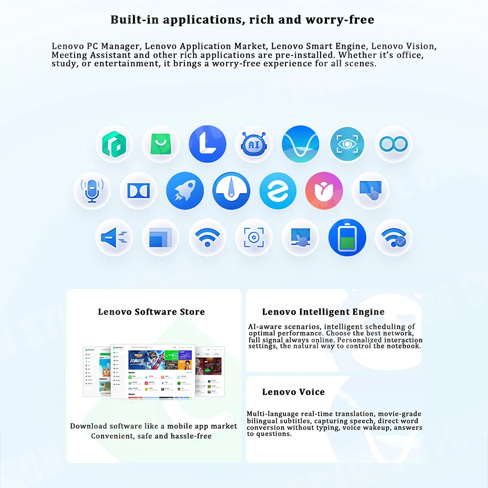 Lenovo PC Manager, Lenovo Application Market, Lenovo Smart Engine, Lenovo Vision,