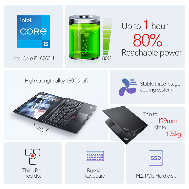 Lenovo Laptop Thinkpad 480 Slim Notebook 8th Intel Core i5-8250U 8G RAM 256G SSD IPS Screen 14 Inch Gaming Computer For Business
